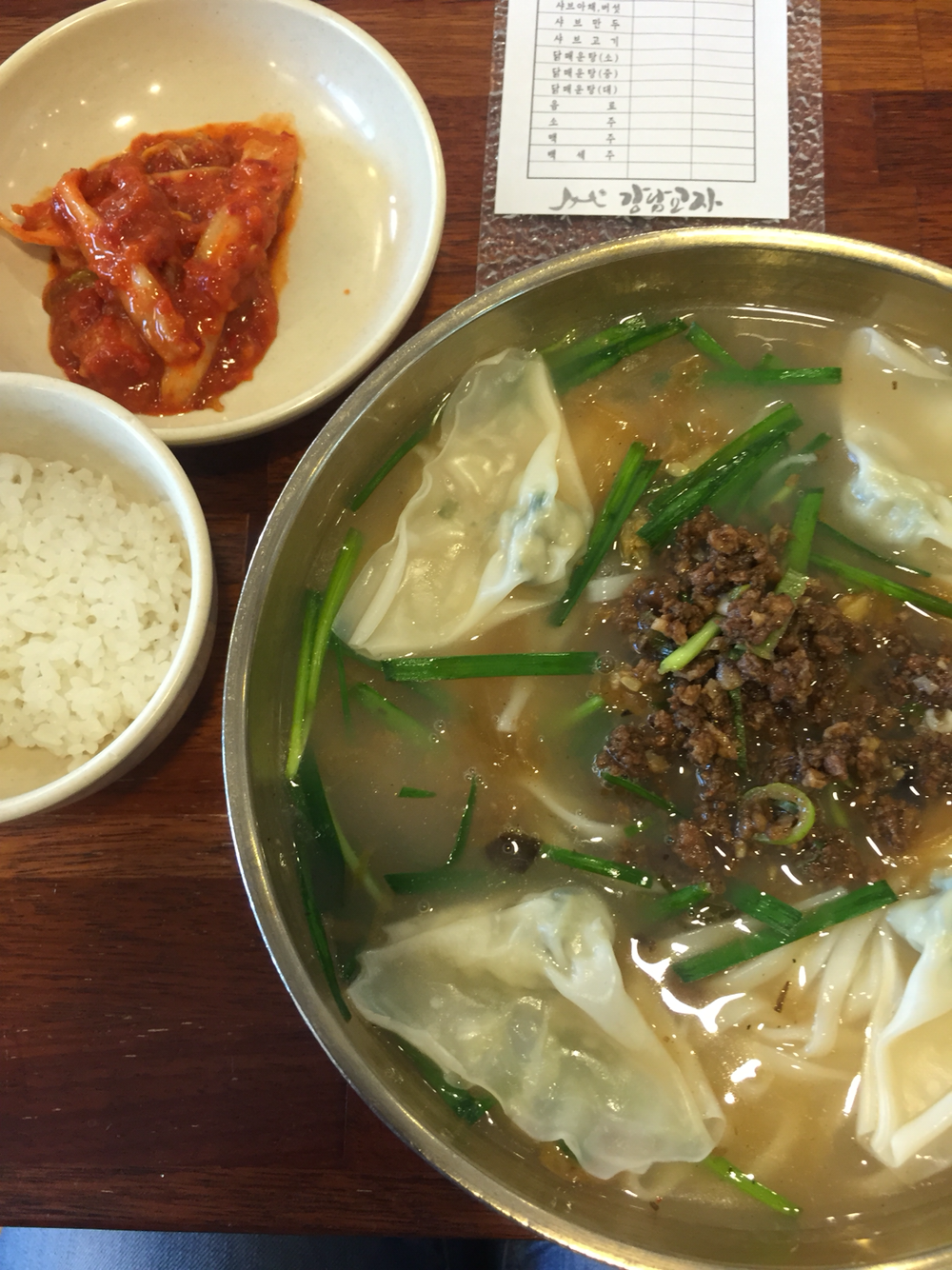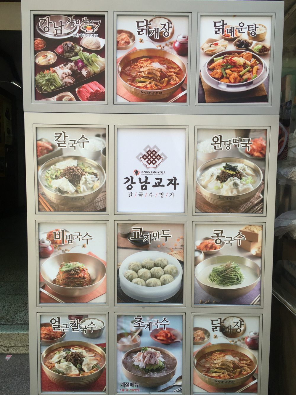 57. 토욜 혼밥. 집에 가서 라면이나 먹을까 하다가 호기심에. 칼국수가 엄청 부드러워 씹기 전에 넘어간다. 닭육수에 쇠고기와 부추 고명. 토욜에도 사람 많은데 동네 다른 가게와 달리 어르신들 많다. 강남역 강남교자