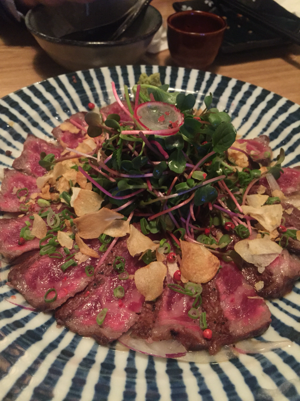 14. 한우 타다키(3만). 오뎅탕 훌륭. 고급진 분위기에 커튼 등으로 좌석 분리한 것은 괜찮은데. 사실 방음은 안되니 시끌시끌 술집. 몇 년 맘고생하신 L쌤 역전극 축하. 청담점이 옮겼다는 갓포 모로미 도산공원점