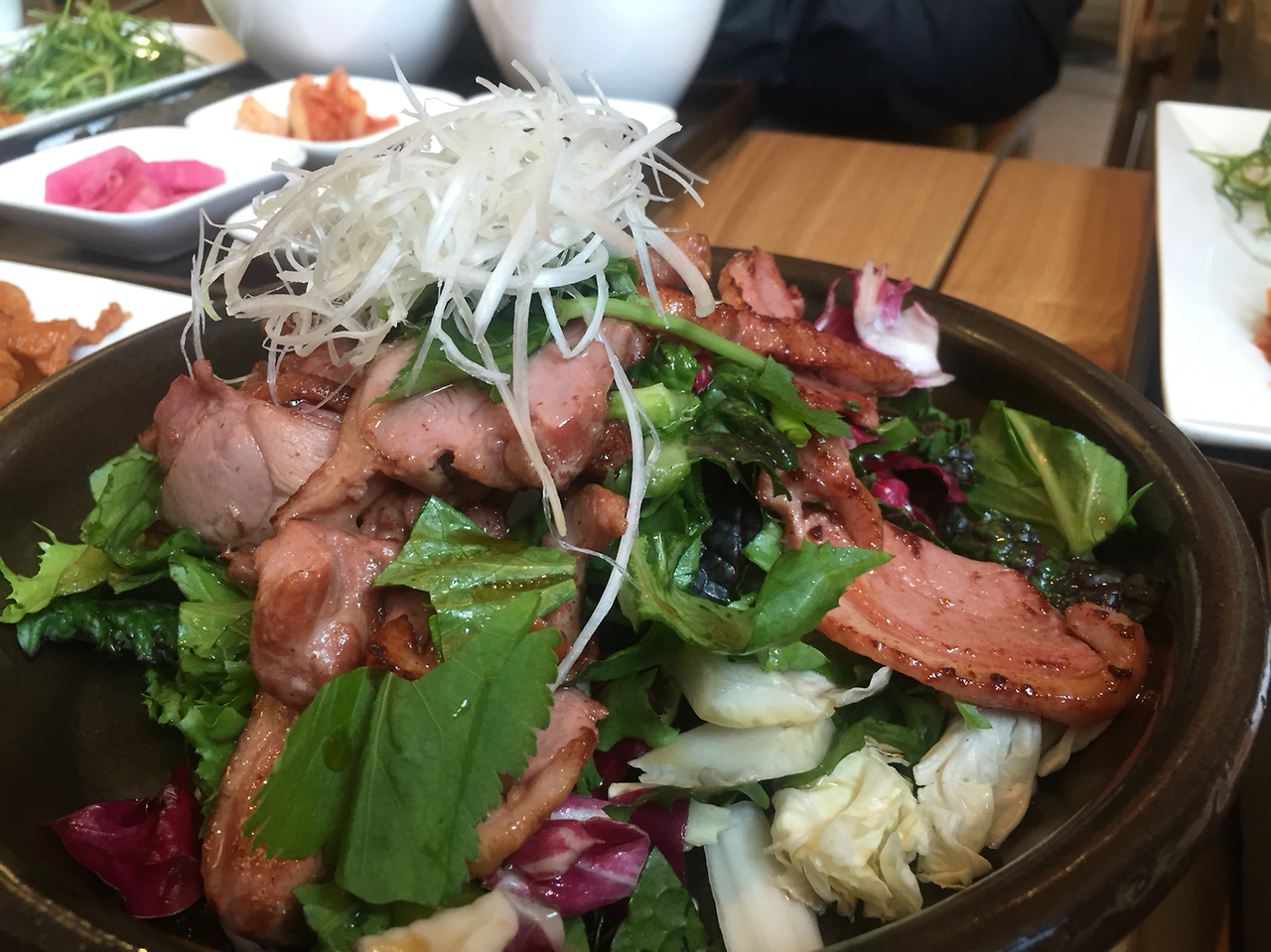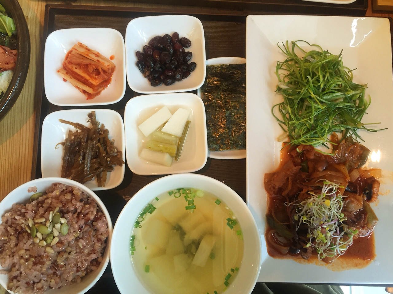 36. 정갈한 밥상 컨셉이 유행이긴 하지. 11가지 잡곡 밥이 맘에 들고. 인당 만원 밥상에 따로 주문한 훈제오리와 샐러드(1만)도 괜찮았다. 다만 10분 이상 줄 서서 먹을 정도냐면 잘 모르겠고. 무명식당 판교역점
