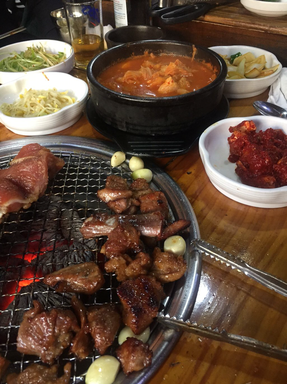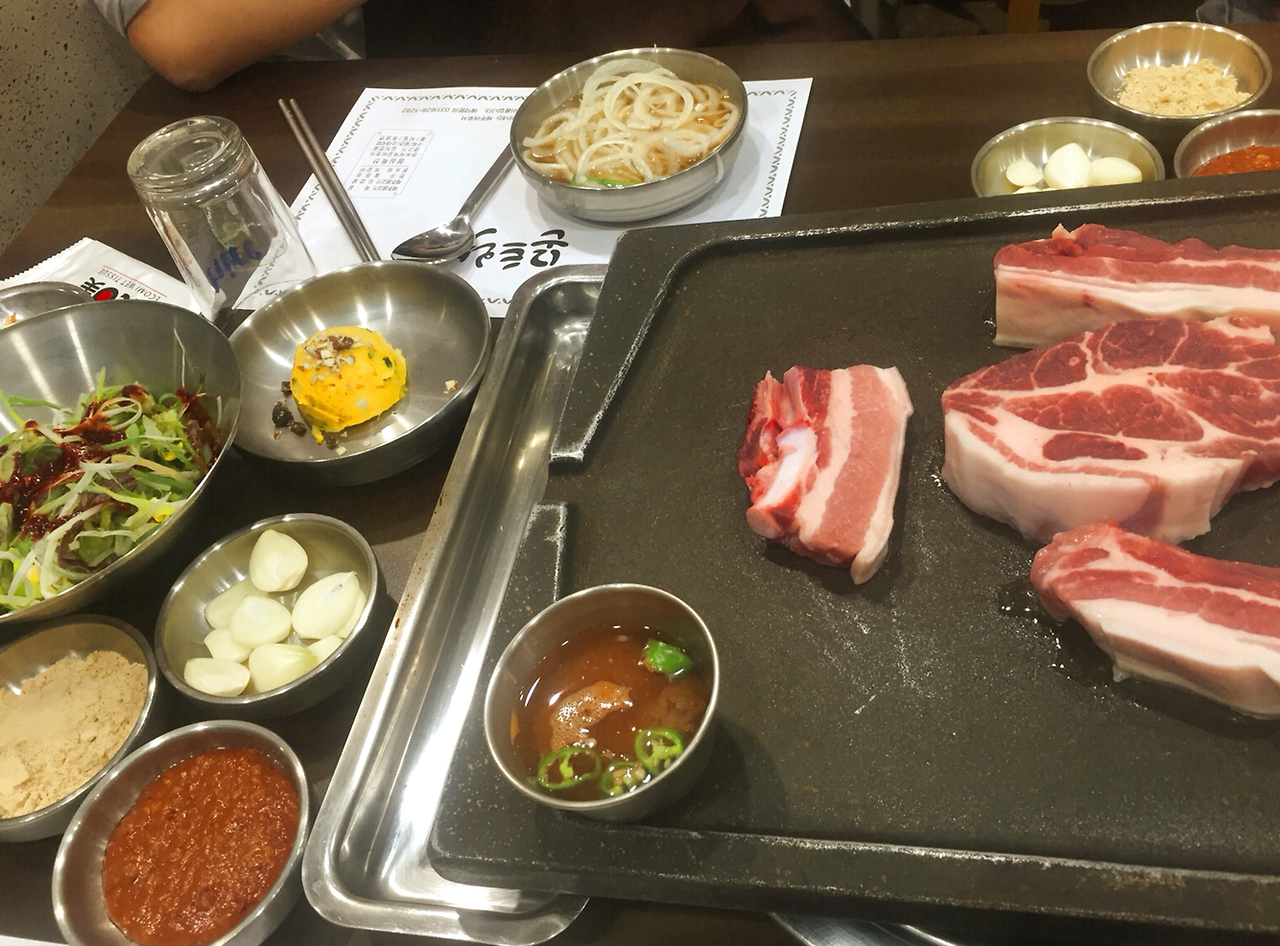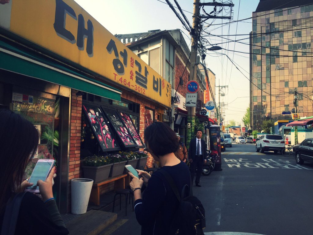 42. 오전부터 열심히 듣고 배우고 떠들고. 웍샵 2교시는 4시반 갈비골목. 이미 사람들 많고. 200g 1만원 돼지갈비는 달달짭조름진한 맛에 야들. 푸짐 김치찌개 계란찜 기본. 5:30 이미 줄서는 성수동 대성갈비