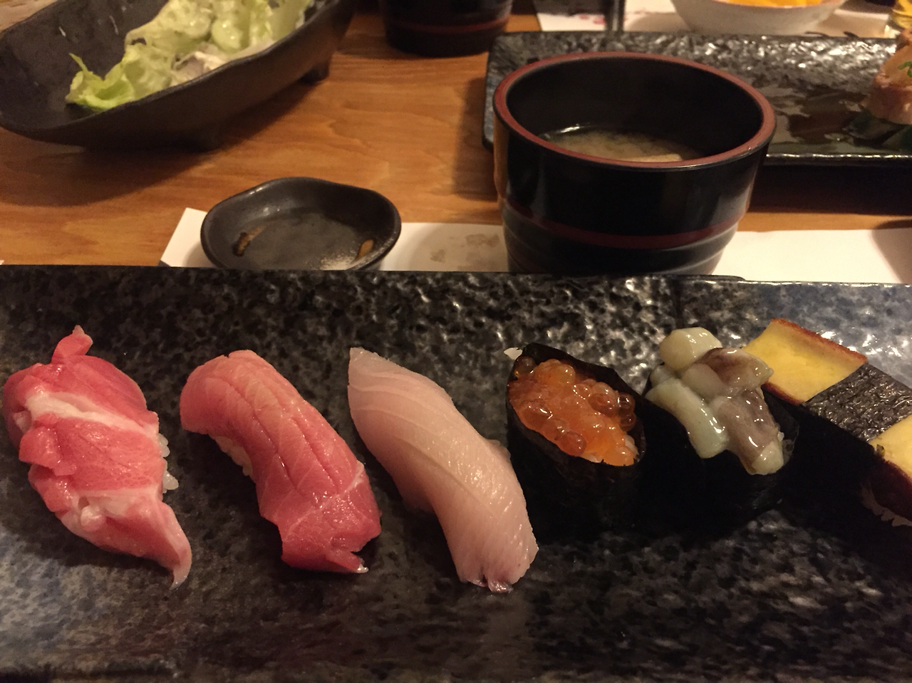 10. 단품으로 하나씩 스시를 주문해 먹는건 처음. 셋트로 차려지는 것보다 차라리 훌륭. 아귀 간인 안키모도 그럭저럭 괜찮은. 사실 대화가 기대 이상 즐거워서 각 1병 백포도주 곁들여 달렸던 그날. 판교 하나스시