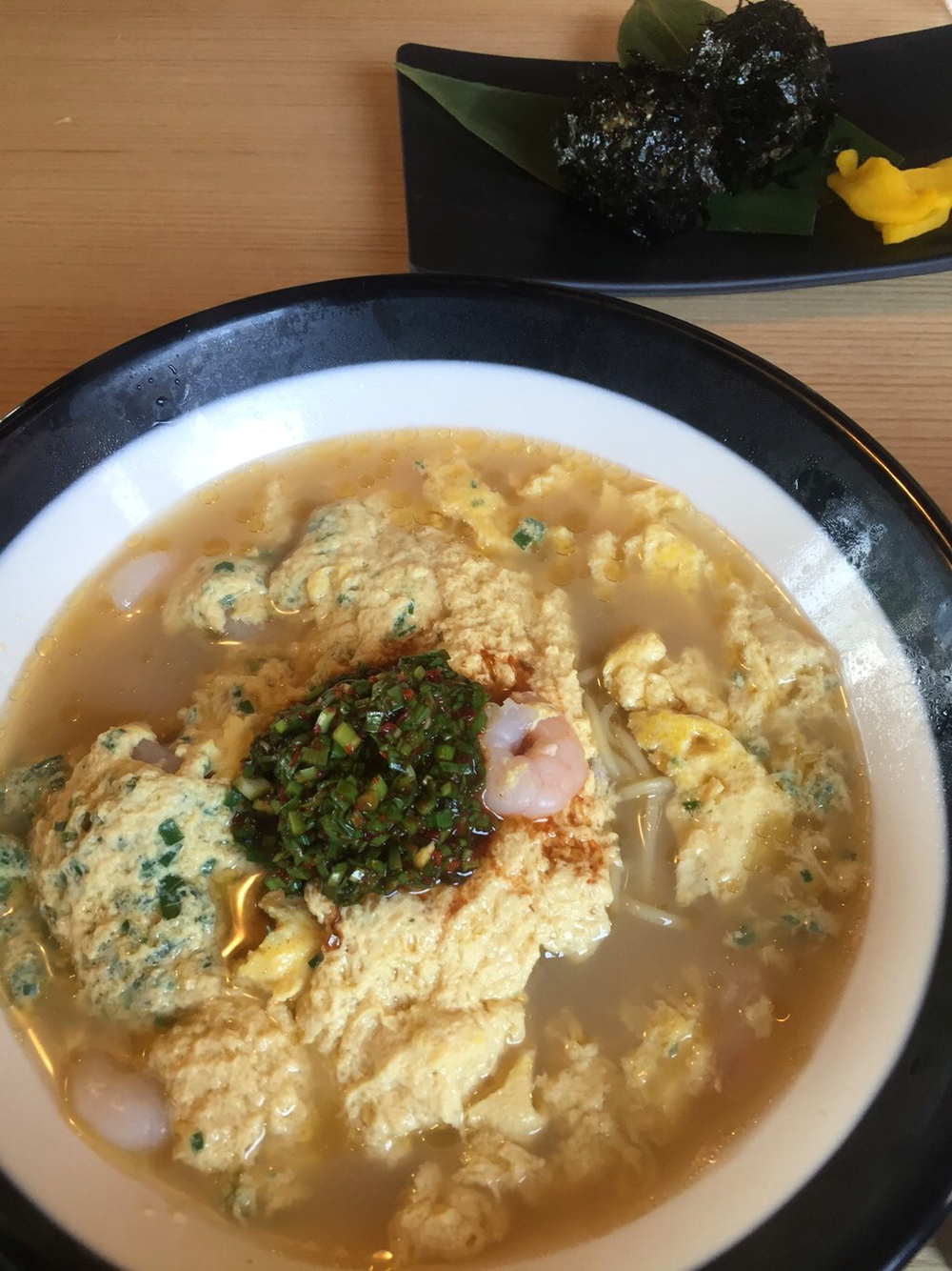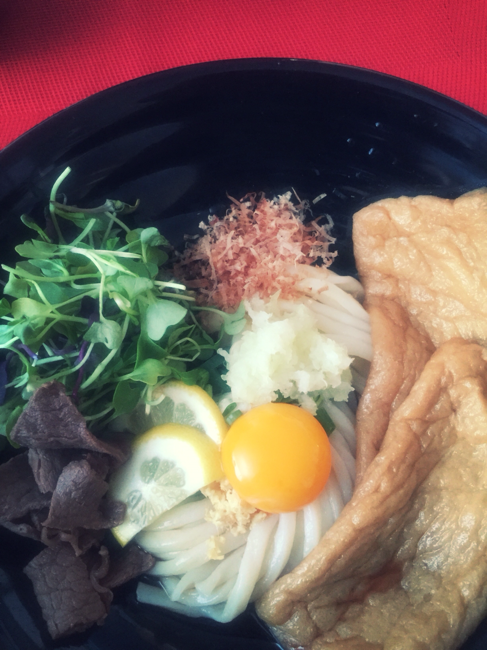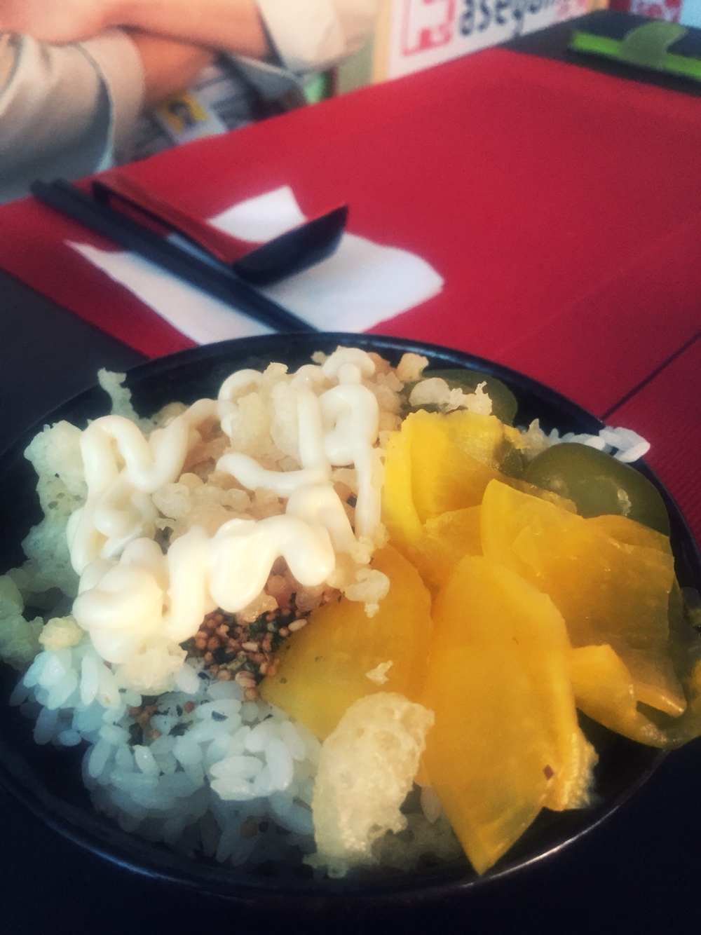 47. 밀가루, 소금, 물로 만들어내는 음식이 우동이라고. S이 권해주신대로 냉우동을 주문. 따뜻한 유부 토핑을 올렸는데 괜찮았다! 밥에 후리가케, 튀김 올려 마요 뿌린 덮밥은 직접 만드는 기본써비스. 판교 아세야마
