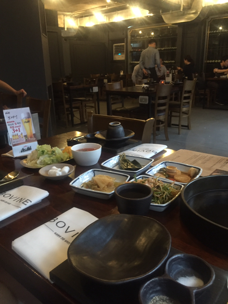68. 인근 고깃집 ㅎㅇㄷ 만석이라 급히 고른곳. 깔끔한데 새로 생긴 덕분인지 호젓. 토치로 살짝 구워준다. 한우 등심 150g 3.6만원. 격무로 살빠진 미녀 K님에게 N님이 고기 사주는데 어부지리. 한남동 보바인