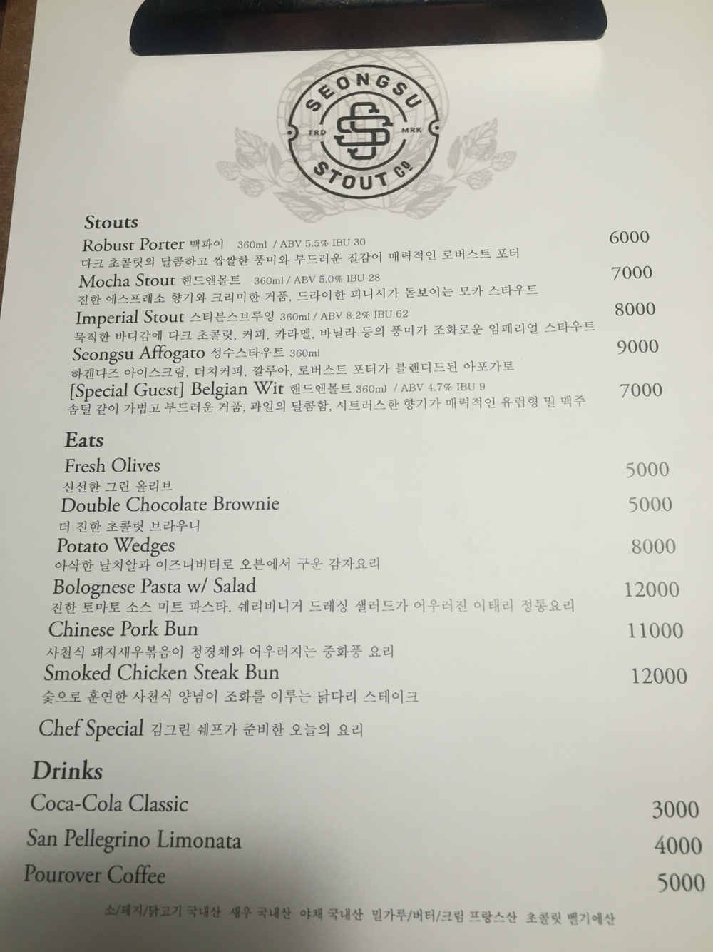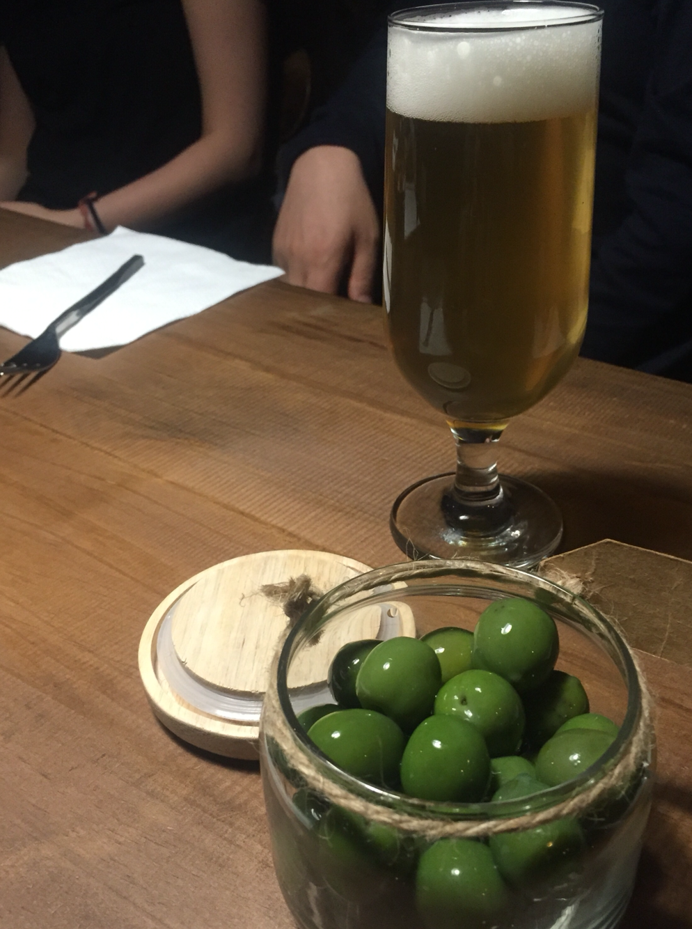46. 성수동 돼지갈비 골목. 잘 보이지 않는 계단으로 올라가면 아담한 맥주집. 특히 흑맥주가 꽤 맛있다. 폭풍감동 안주는 올리브! 대체로 가격 착한데 올리브가 압권. 계속 집어먹고 씨 더미를 숨겼다. 성수 스타우트