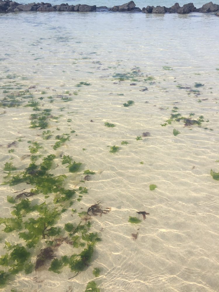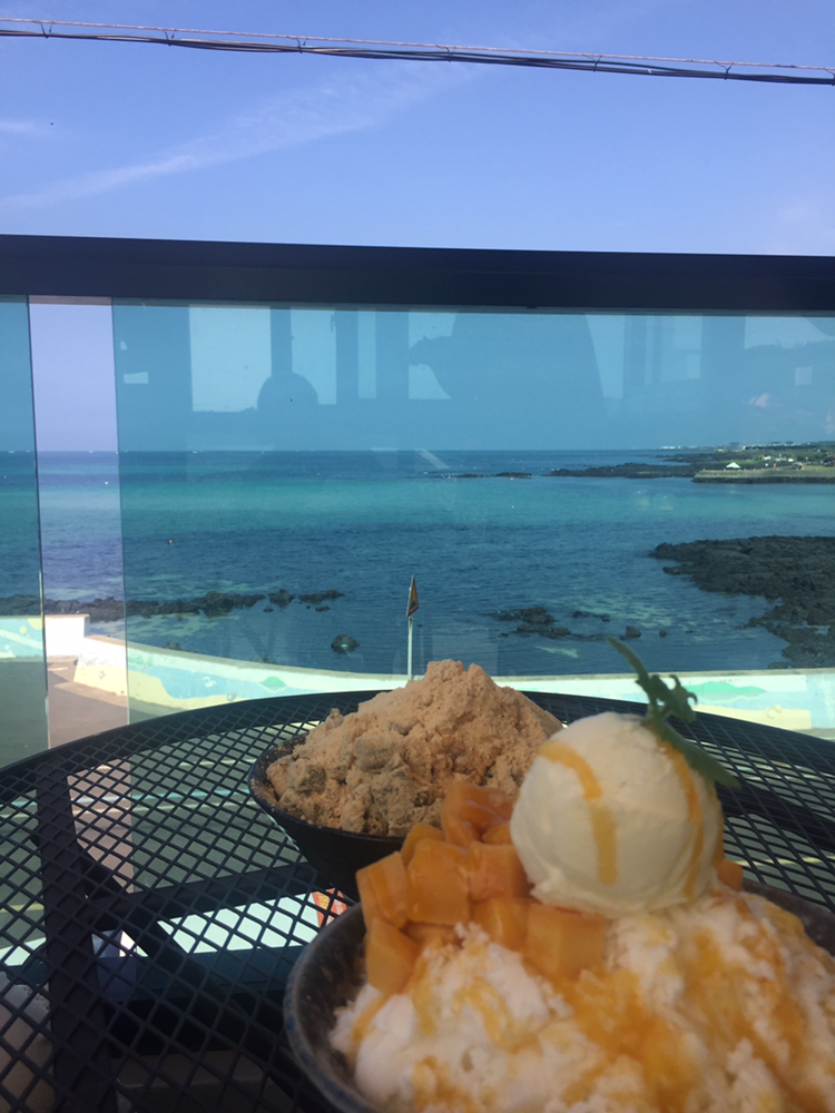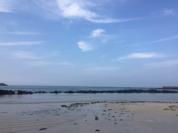 62. 제주 해안도로를 따라 카페 거리가 늘어났고. 이미 핫한 관광지인 월정리 대신 아직은 덜 붐비는 평대리. 한 숨 쉬어가기 딱 좋고. 애기들 좋아할 맑고 얕은 바다. 발이라도 담그니 맘에 날개가 달린다. 슈가바당