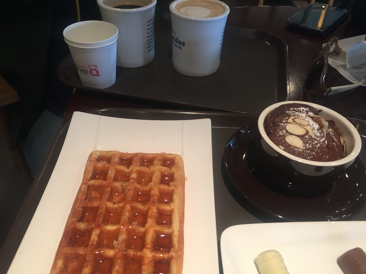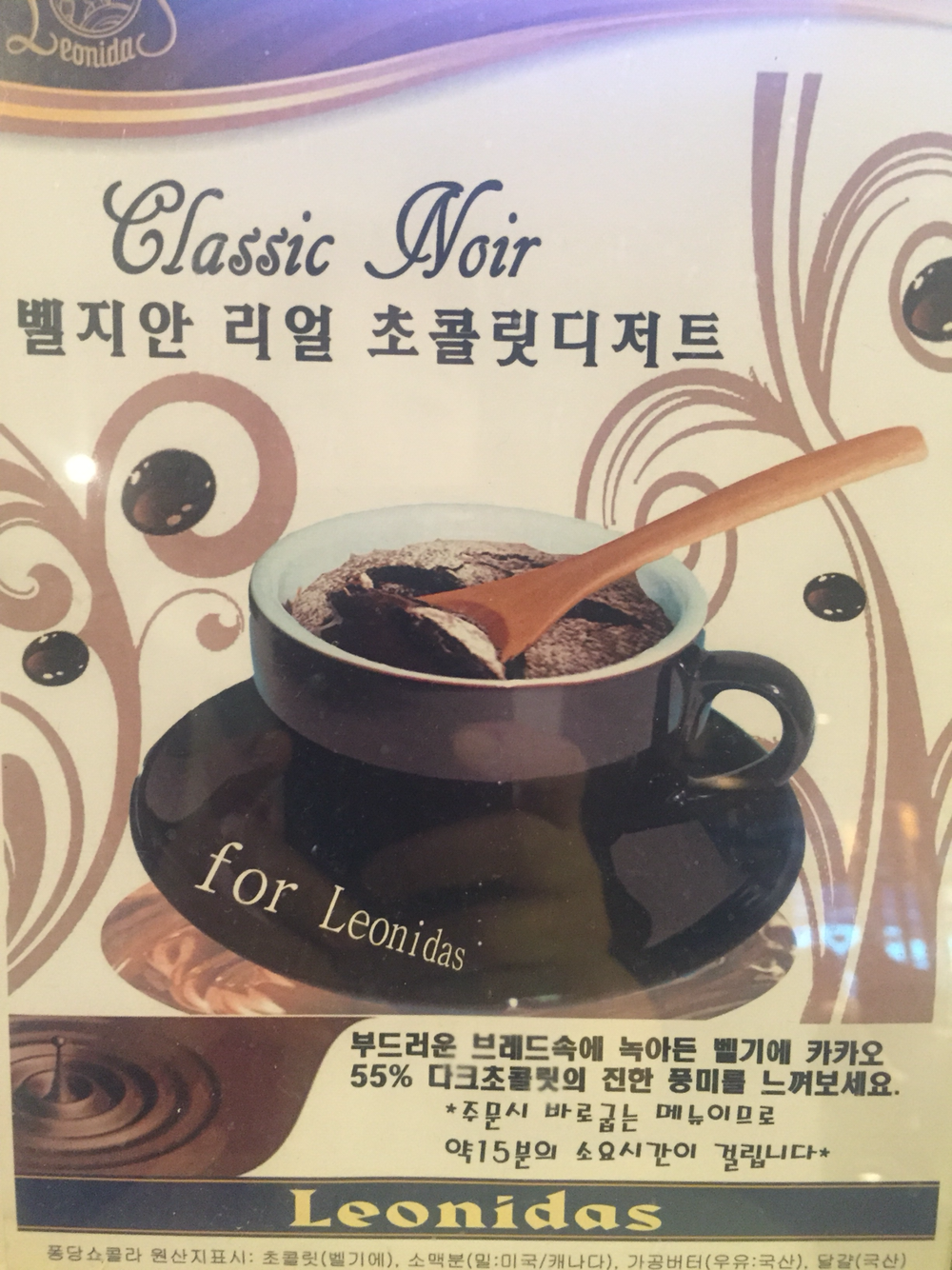 18. 아메리카노+초콜렛2개+클래식느와르 1만원 셋트 주문했는데. 클래식느와르 대박. 55% 초콜렛 녹여 초코 빵(?)과 오븐에 구워 겉은 바삭 속은 흘러내리는 초콜렛. 아들이 매우 흡족해하심. 레오니다스 이태원점