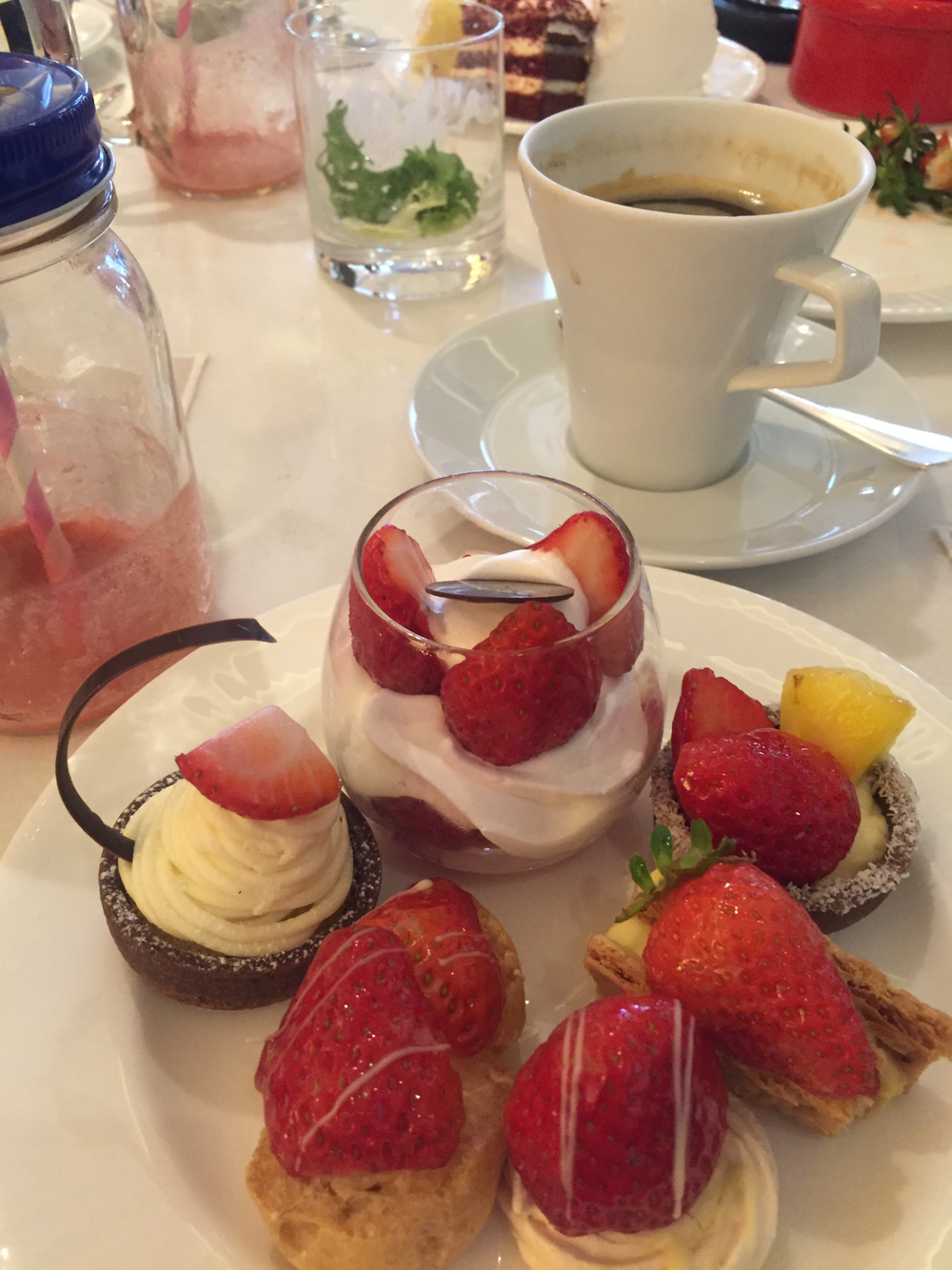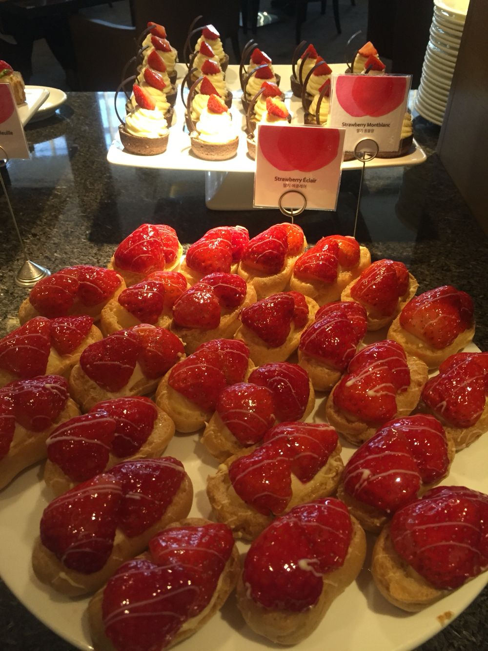 34. 난생 처음 딸기뷔페. 딸기파스타 등 요깃꺼리에 달다구리 천국. 고객 대부분이 젊은 여성들. 술집 다니는 것보다 나은 호사. 열심히 일한 직딩들 올만하다고 K온니 말씀. 메리엇호텔. 할인받아 인당 44,400원