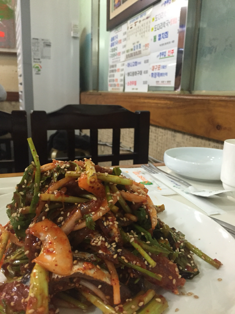64. 수요미식회 나온 뒤 줄이 길어졌다는 소문에 밥 때 못가고 늦은밤 살짝 부족한 알콜 채우기에 딱 좋다. 걸쭉한게 살살 녹는 고사리 육개장은 여전히 최고. 몸국까지 완벽한 안주. 소주가 술술. 제주시 우진해장국