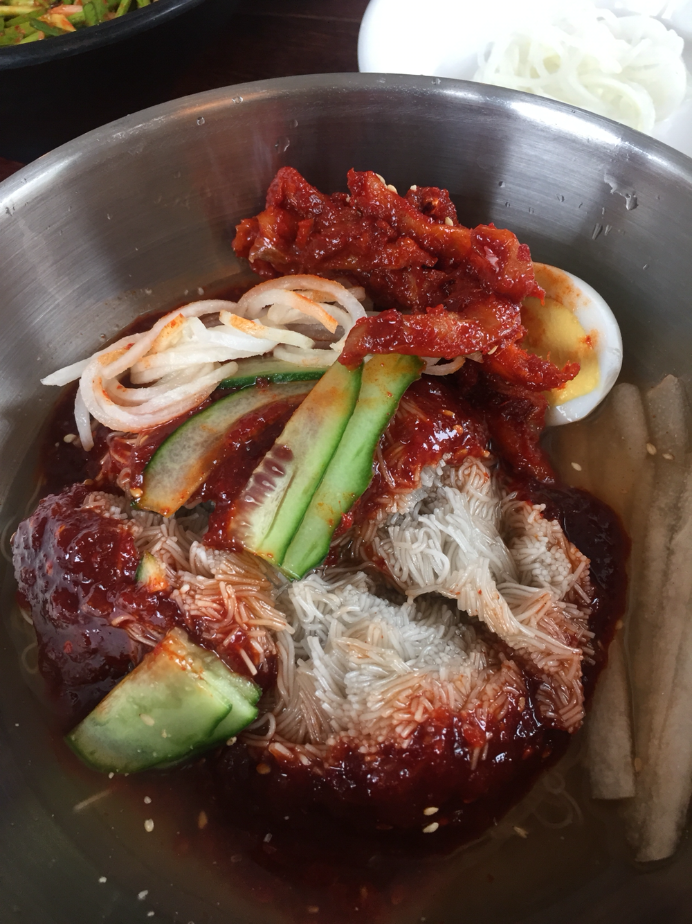 52. 새콤하고 고소하고 동치미 덕에 쨍하게 시원한 초계국수(7천). 오전에 몸 좀 쓴 덕인지 흡족하게 흡입. 도토리전병(1만)도 먹어본 중 정말 훌륭. 자전거인들의 코스라더니 평일에도 바글. 미사리 밀빛 초계국수