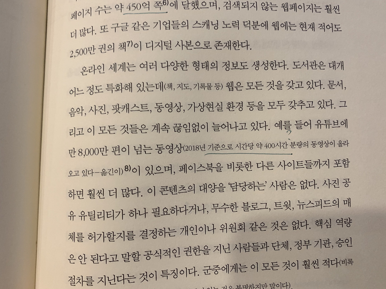 와중에 오타를 발견했어요.. 283쪽에 옮긴이 역주로 18년 기준 유튜브에 시간당 400시간 분량의 영상이 올라온다고 되어 있습니다. 마침 최근 제가 좀 들여다보는 내용이라, 좀 이상해서 구글의 지인에게 직접 물어봤습니다. 19년 기준 분당 500시간 분량의 영상이 업로드되고 있습니다. 하루에 올라오는 규모가 88년치여요.