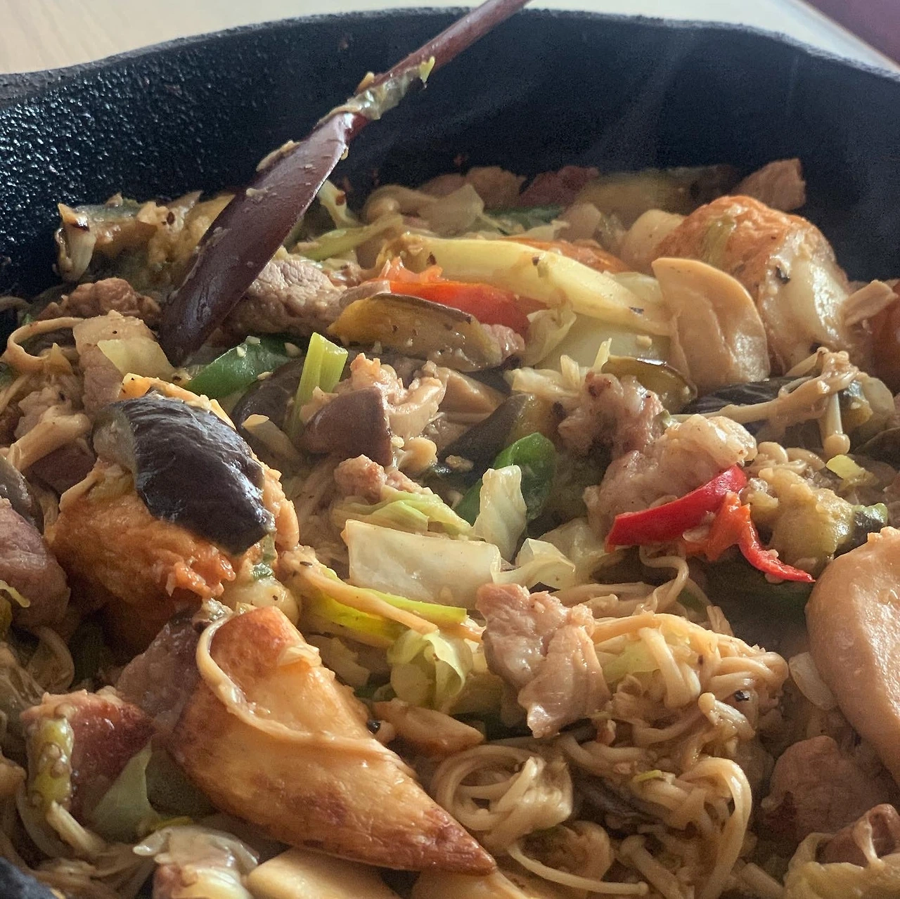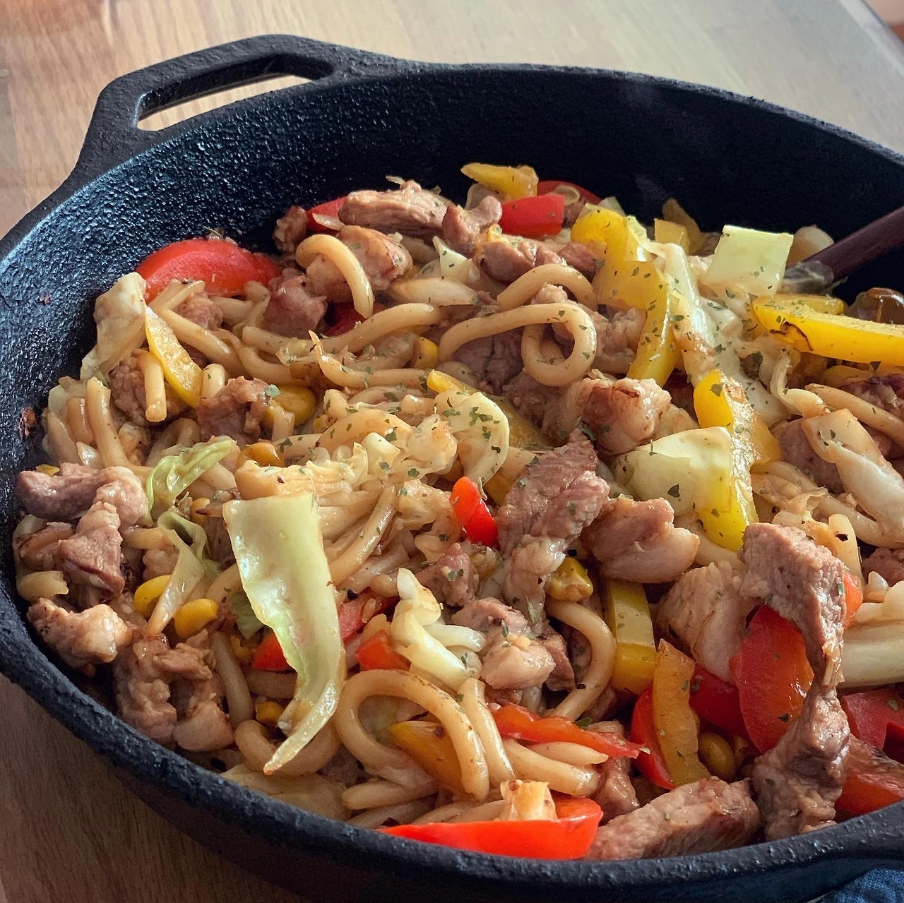 원래 고기와 야채에 우동사리 넣어 야끼우동 해먹고 남은 재료 한 번 더 한거죠.