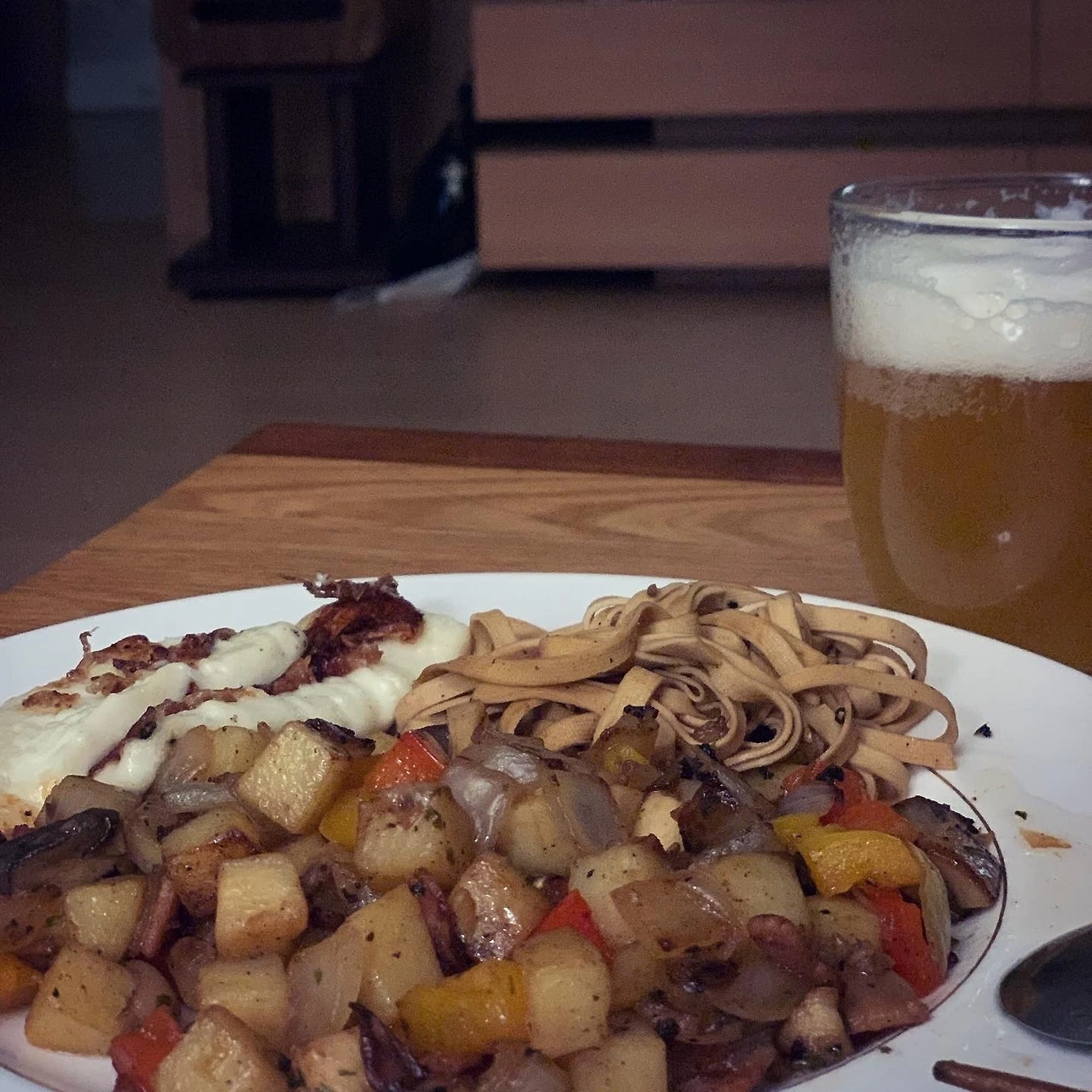 셋이 T집에서 간단 저녁. 냉장고 뒤져서 베이컨과 사과를 볶았더니 나름 근사한 안주. T가 끓여준 쌀국수도 좋았죠. 어느 동네 돌아가는 꼬락서니 우울한거 빼면 괜찮을텐데. 때로는 그런 상황이 새로운 도전의 동력이죠..