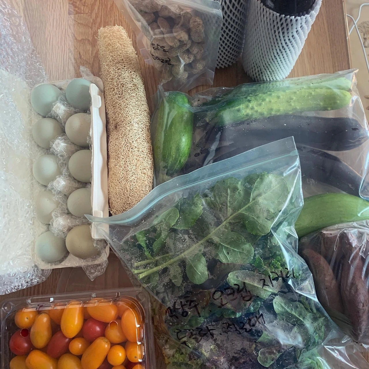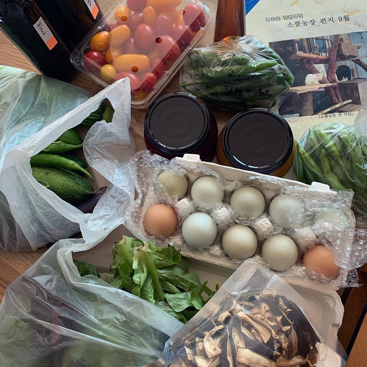 10월 꾸러미와 미처 못올린 9월 꾸러미 사진 함께 올립니다. 추석 연휴 때문에 10월 초에 이어 두 번 받은 꾸러미. 가을의 풍요로움은 이렇게 신선한 야채들 틈에서 다정하게 향을 냅니다. 말린 가지나물, 호박나물처럼 이제 11월, 12월의 꾸러미는 어떻게 채워주실지 그 정성을 미리 상상해보고요.
