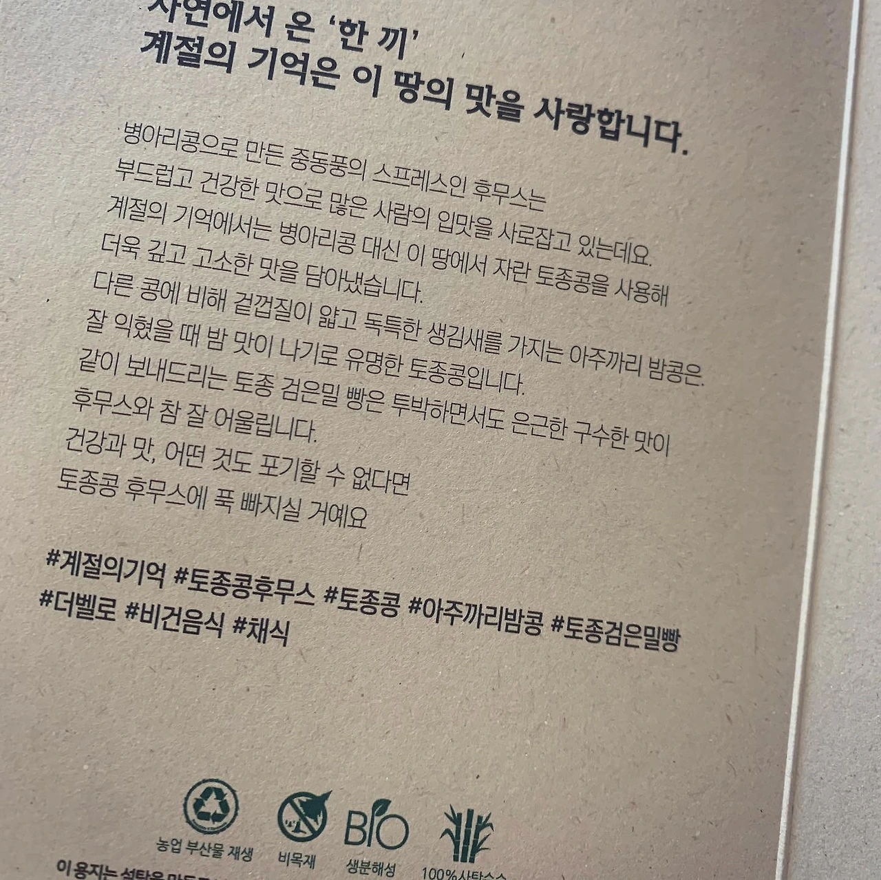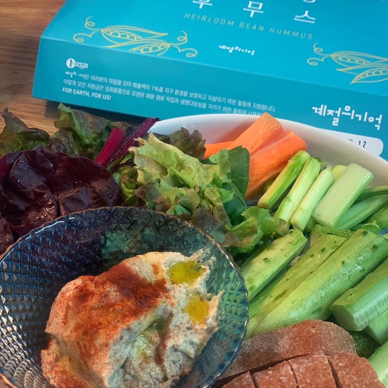 이태원 중동식당 #허머스키친 초창기에 발견하고, 동네방네 소문내며 즐거웠던 건.. 낯설고 신기한 음식이기도 했지만 허머스 자체가 맛있었기 때문이죠. 디타워에 고급지게 오픈했을 때도 가끔 갔지만, 이제는 사라져서 아쉬웠어요. 그리고 그 허머스를 #후무스 라는 이름의 #계절의기억 #밀키트 로 만났습니다. 병아리콩 대신 토종 아주까리 밤콩을 썼다는데, 그 맛을 찾아 여러가지 콩으로 도전해봤을 과정이 상상되어 왠지 다정한 기분까지. 부드럽고 건강한 맛, 깊고 고소한 맛, 딱 그렇습니다. 함께 들어있는 좋은 올리브유를 얹고 파프리카 가루까지 더했더니 풍미가 근사합니다. 밀키트 안에 아스파라거스, 샐러리, 오이, 당근 야채가 좀 들어있긴 한데, 작은 오이 하나 추가했고, 남은 쌈야채 깔아봤어요. 검은밀빵을 구웠어야 했는데, 시간 없어서 패쓰한게 약간의 패착. 그러나 입 짧은 옆지기도 잘 먹는걸 보면 이게 괜찮은 맛이란 거죠! 설명서 종이조차, 설탕 만들고 난 후 사탕수수 부산물로 만들었다는 친환경 생분해 종이. 친환경 포장 뿐 아니라 내용물까지 최선을 다한 밀키트, 칭찬해봅니다. 이건 11000원. 손님 초대해 이것저것 차릴 때 당당히 한 켠에 놓아둘만 합니다. #마냐밥상 #K온니_고마워요