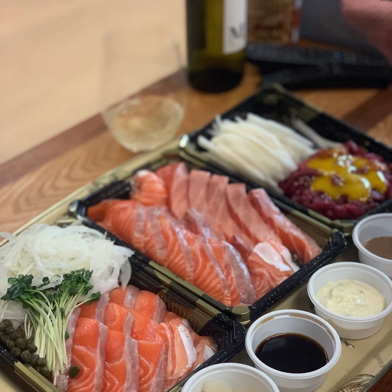 저녁은 알아서 준비하겠다고 큰소리친 옆지기 픽은 집 앞 연어식당 테이크아웃. 원래 후암시장 총각수산에 회 뜨러 갔는데, 대기 10팀에 최소 2시간 걸린다는 통보에 포기했다고요. 냉장고 털어 백선생님 요리라도 해주나 했던건 과도한 기대. 씨겨자 소스에 올리브, 오이지 꺼내서 나름 나쁘지 않은 주말 만찬이었어요. 연어만 먹으니 느끼해서 라면의 유혹에 넘어간건.. 뭐 예정된 사고죠. #23주년만찬 #금주9일째저녁_한모금은_술아님
