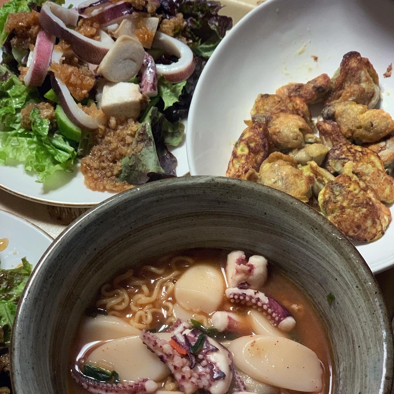 두 달 만에 동네 시장 나들이. K선배 포스팅 덕분에 굴떡국 땡겼어요. 온라인 주문할까 하다가 발도 나았으니 시장으로. 굴 한 근에 9000원. 마침 생물 오징어 두 마리 1.2만원이라 해서 함께 청하며 현금을 드렸더니 천 원 깍아주시더군요. 괜히 고맙고 미안하고^^; 점심은 굴떡국. 오징어 한 마리 숙회로 준비하고 남은 굴은 식초에 호르륵. 딸과 놀면뭐하니 재방송 보다가 저녁은 라면으로 결정. 딸이 안그래도 굴전 먹고 싶던 참이라 해서 점심에 남은 굴은 밀가루 살짝 묻혀 계란물 입혀 부쳤어요. 남은 오징어 다리는 떡라면에, 몸통은 샐러드 토핑으로. 오징어 킬러인 따님을 위한 일요일 #마냐밥상 근데 오징어가 남았어요... 오징어 씻는데 손만 가렵지 않다면 좋을텐데.
