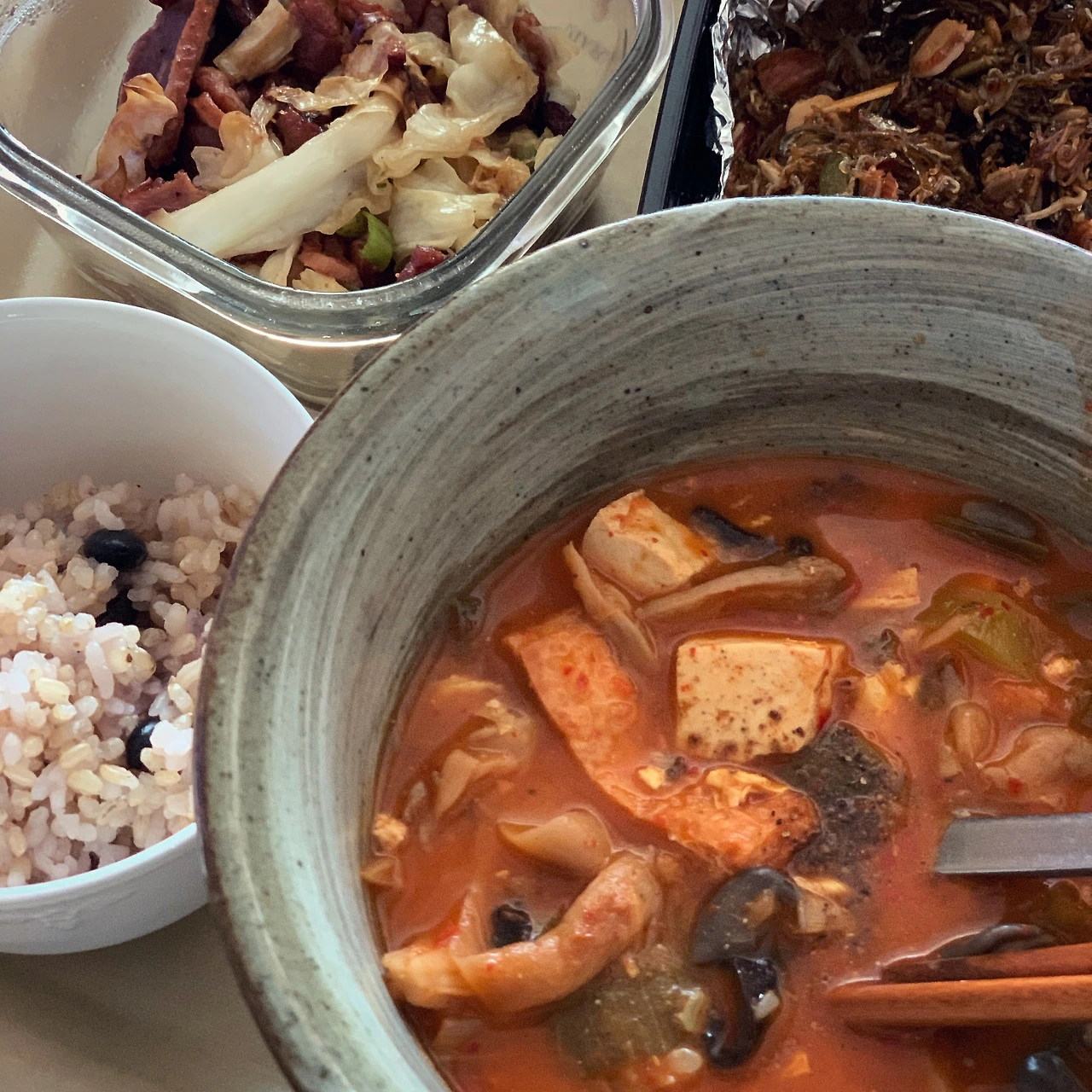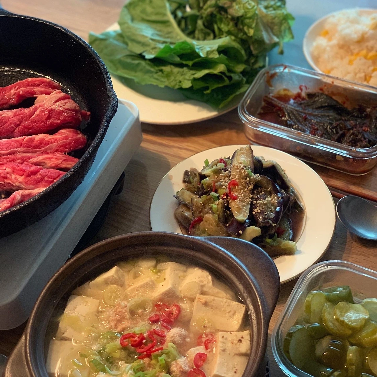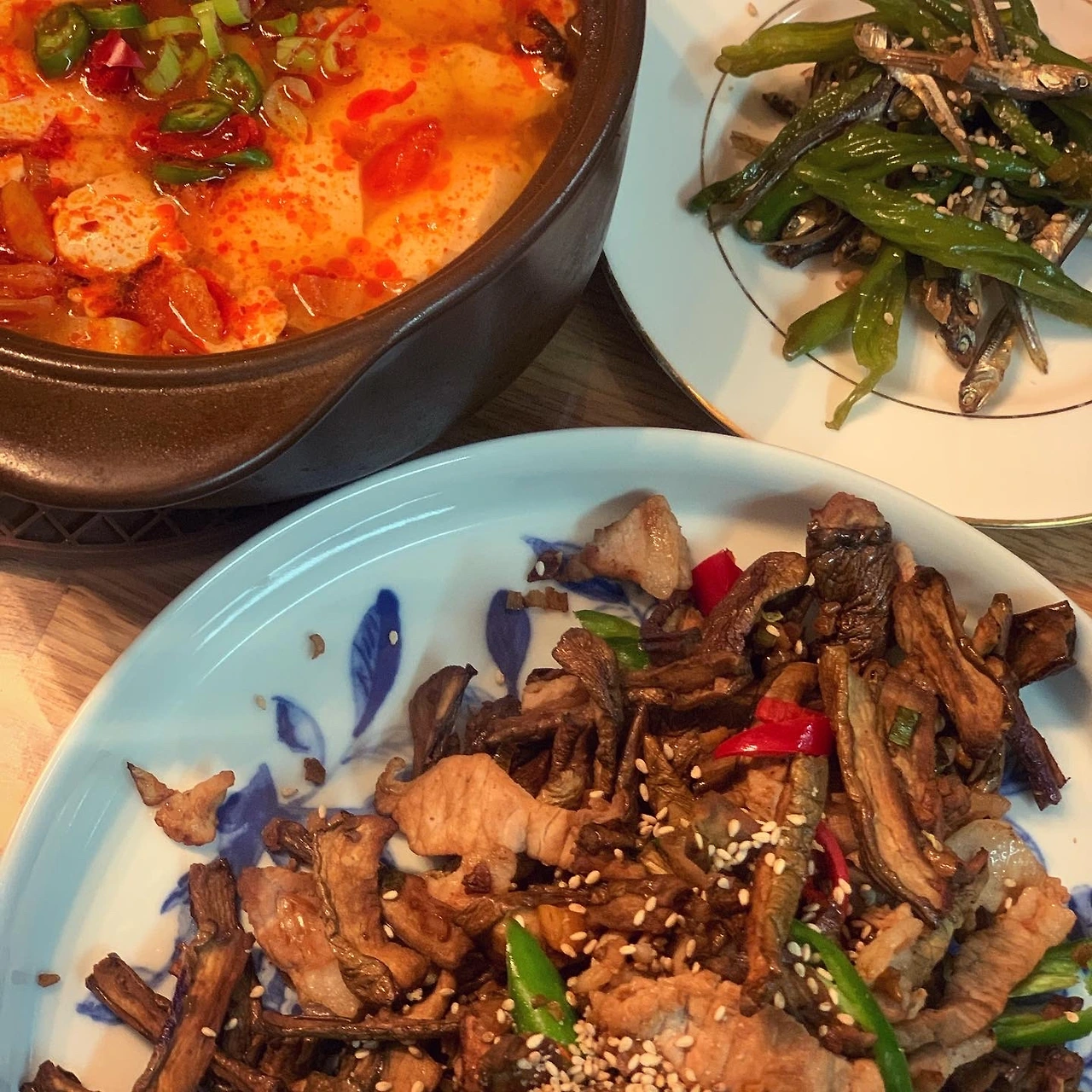 말린가지볶음과 꽈리고추멸치조림, 얼큰순두부 정도만 해도 왠지 건강한 기분.. #마냐밥상