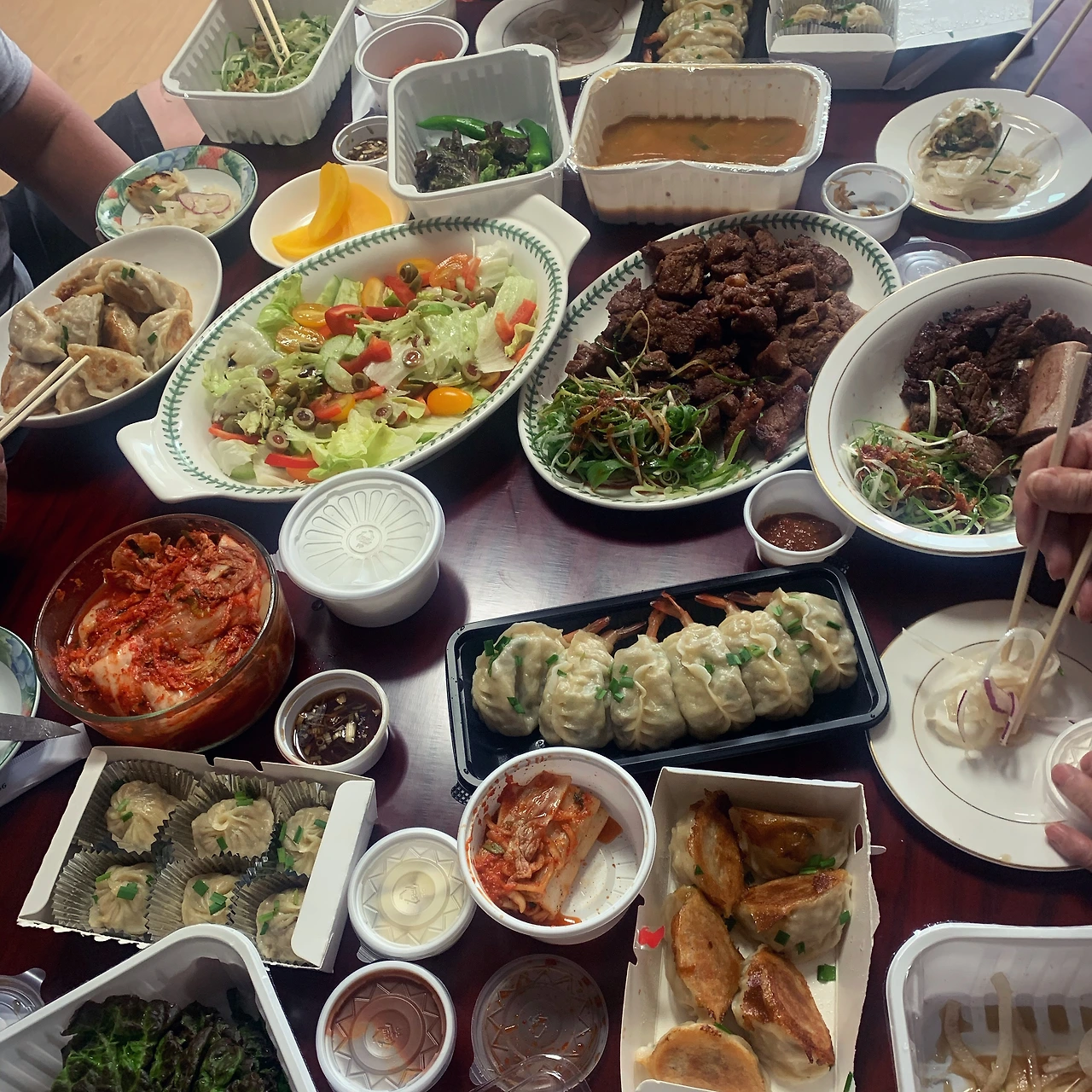 시아버님 생신 차림을 배달음식으로 준비했어요. 갈비구이 셋트에 나름 미슐랭 맛집인 구복만두를 주문했죠. 만두는 1인분 6개인데, 우리 가족에 시부모님, 시누이까지 7명이니 메뉴별로 2인분 시켰고.. 둘러앉은 뒤에야 알았어요. 아들 군대가서 우린 모두 6명... 바보. 친정엄마표 미역국 남은거에 샐러드와 과일만 준비하니 편했던 #마냐밥상. 그래도 며느리 모드는 에너지 소비량이 달라요. 한거 없이 녹초.. 평소 배달음식 잘 안먹다가 꽤 훌륭하긴 했는데.. 분리수거 담당 옆지기가 엄청난 플라스틱 규모에 당황했어요. 친환경 포장이 필요해요..