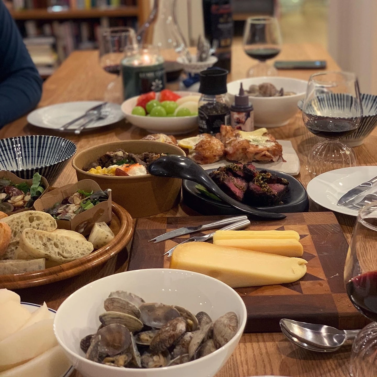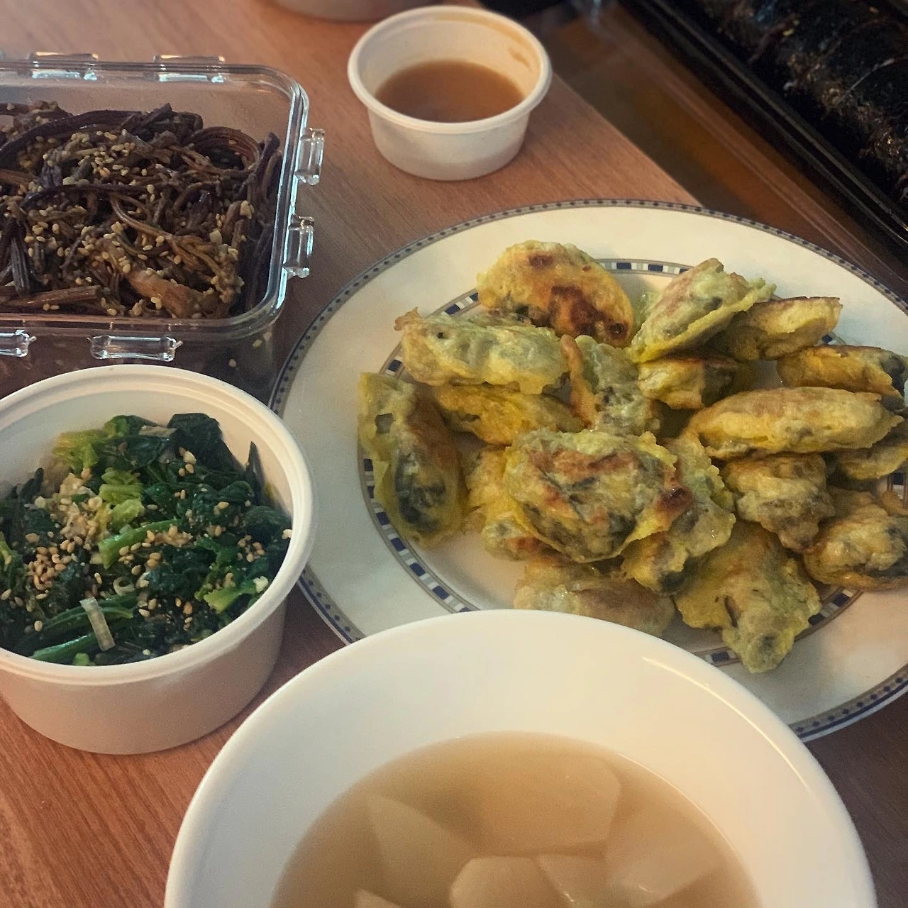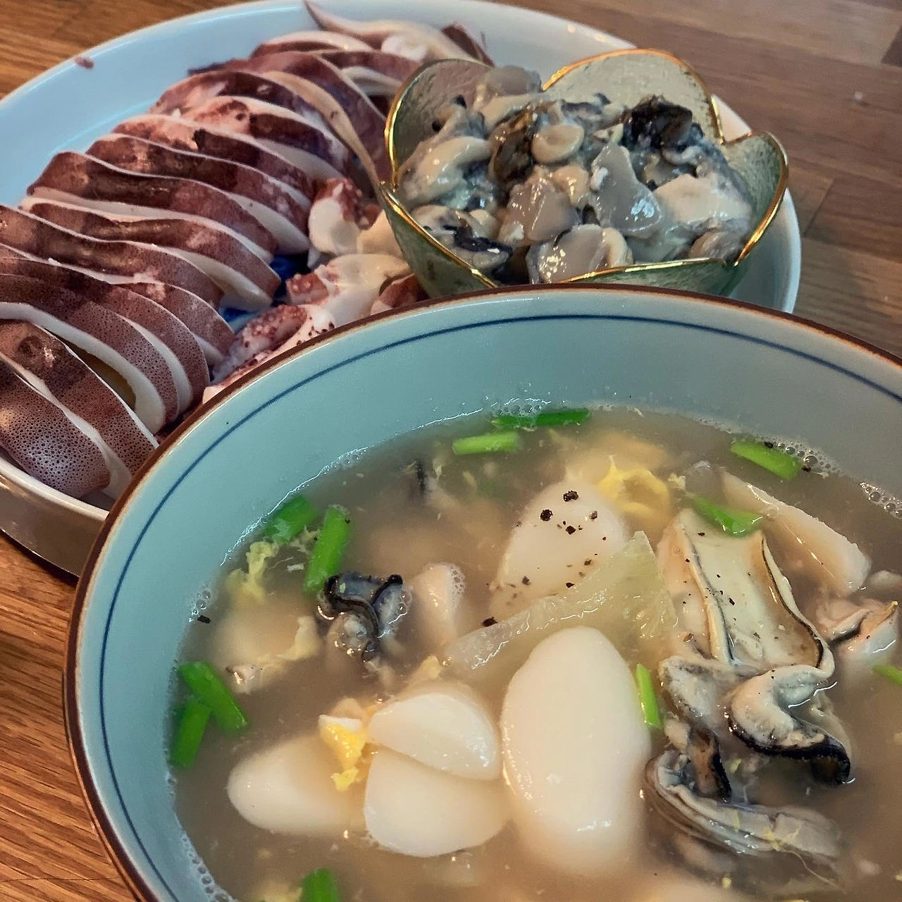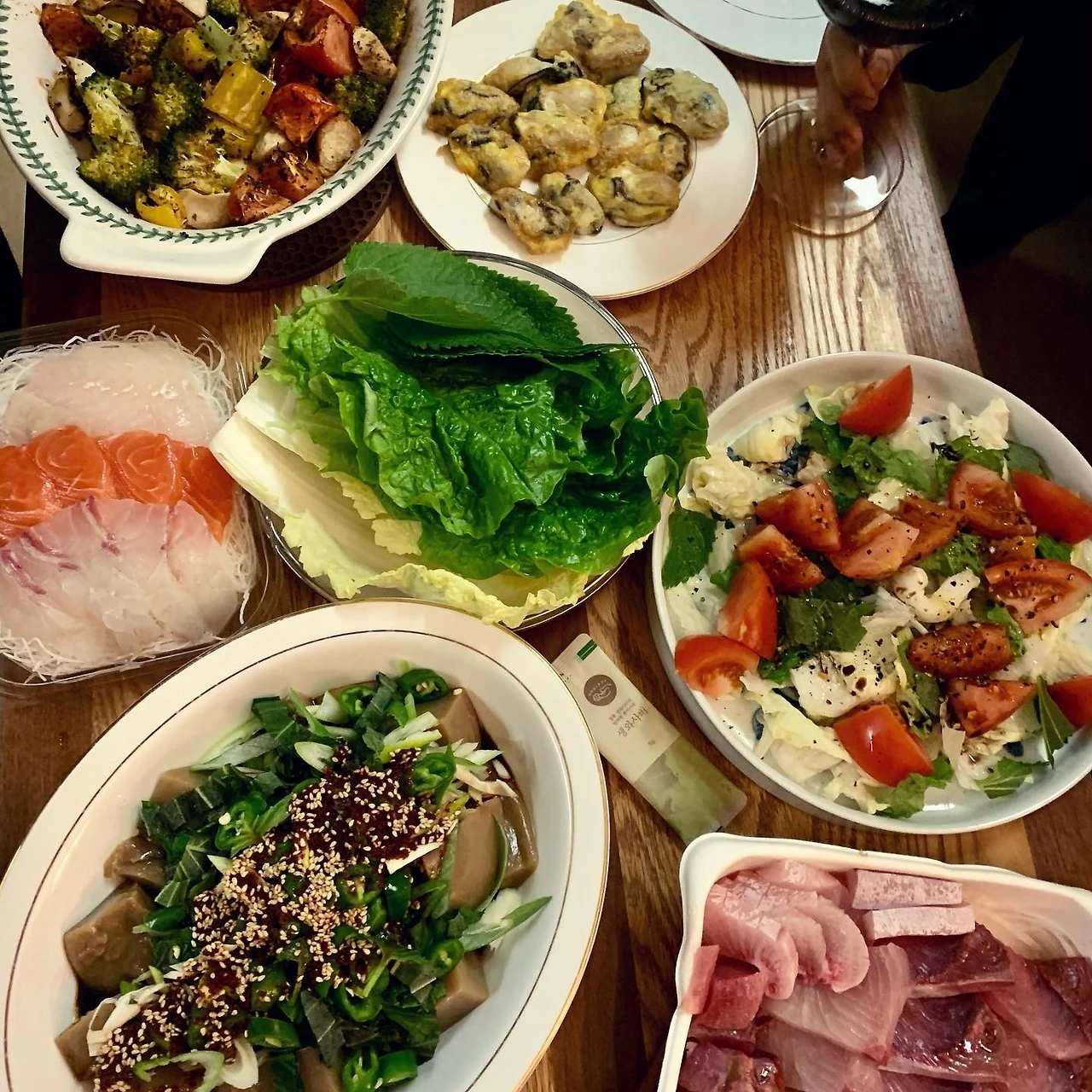 울 집에서도 모였어요. 오늘회 회를 주문하고, 비건 손님을 위해 야채구이, 샐러드 추가. 훌륭한 내 친구가 직접 쑨 도토리묵은 엄청 담백한데 양념은 진해서 또 좋았어요ㅎ 굴은 절반 나눠 굴전과 굴떡국으로 마무리. 스페셜게스트 L작가님 즐겁게 함께 해줘서 고마워요. H야. 힘내자! 기대된다.