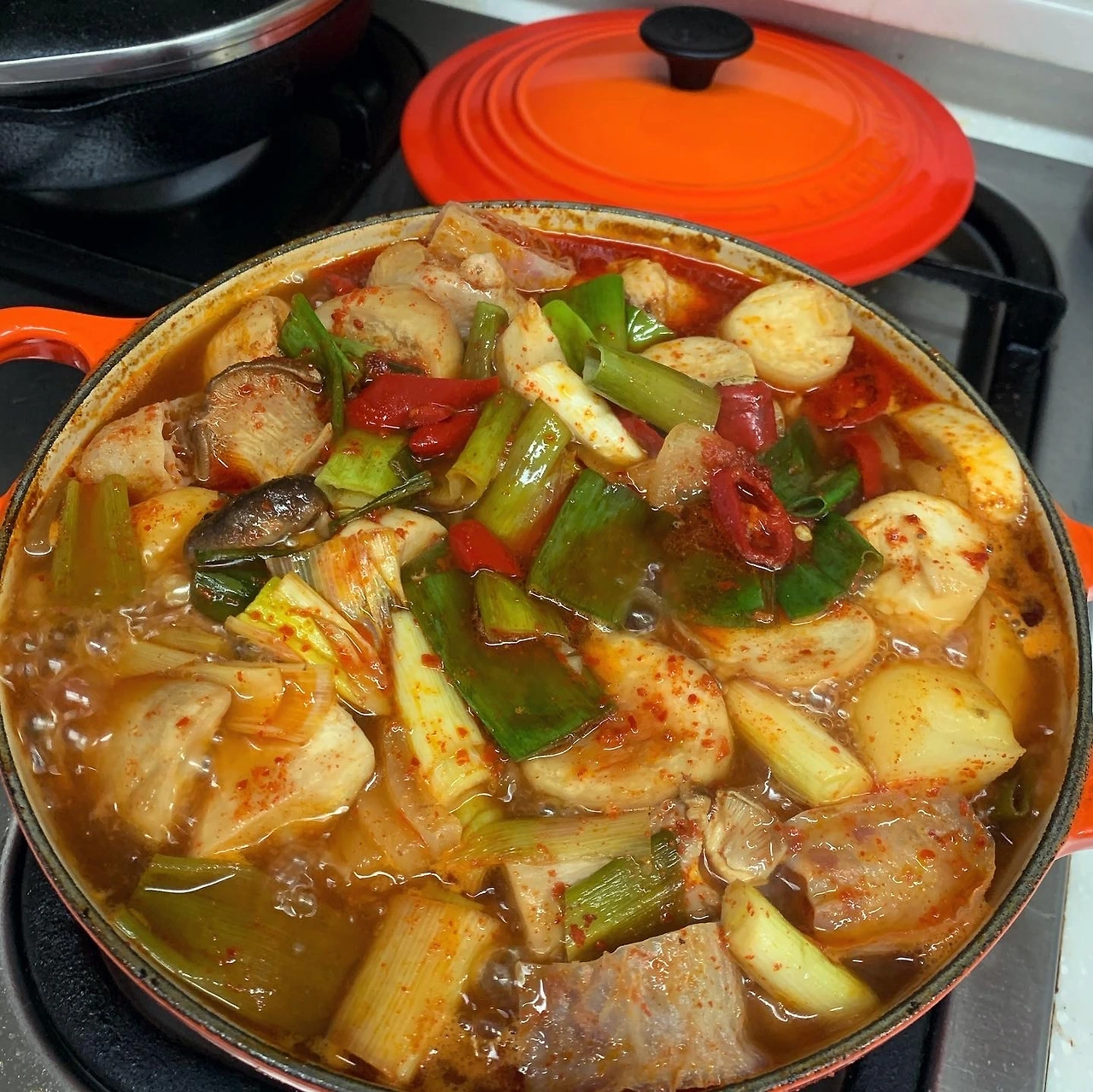 중복, 모처럼 그 단어만 머리에 남아서 딸과 둘이 하는 일요일 점심 #마냐밥상 토종닭 백숙을 올리겠노라 결심. 동네 정육점에서 큼지막한 닭을 사고, 부추도 구입. 1300원 부추 한 단이 너무 많았고, 집에는 마침 어제 산 오징어가 남아서 부추전.