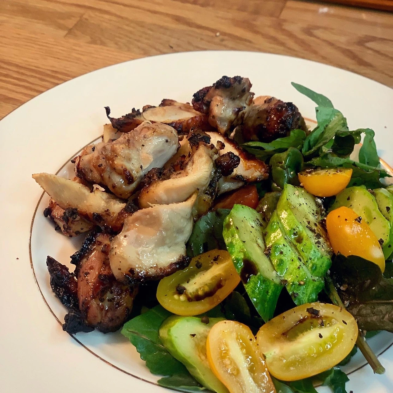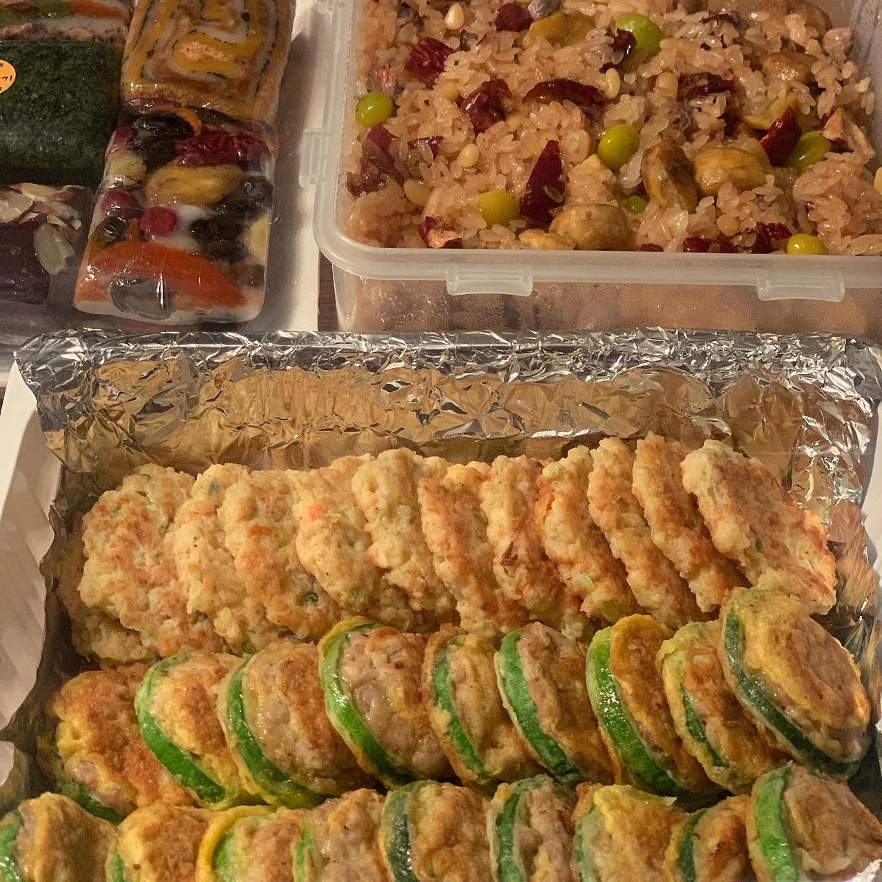 냉동실 연어 해치우기 위해 #소뿔농장 귀여운 오이를 돌려깍기로. 농장 야채 위에 토마토 황금향 등 과일 올리고.. 어제 나 없는새 아빠와 딸이 먹다 남긴 치킨과 마늘소스로 마무리. 혹시나 하여 역시 어제 남은 불고기를 다지고, 멸치볶음 활용해 현미볶음밥 곁들였어요.
