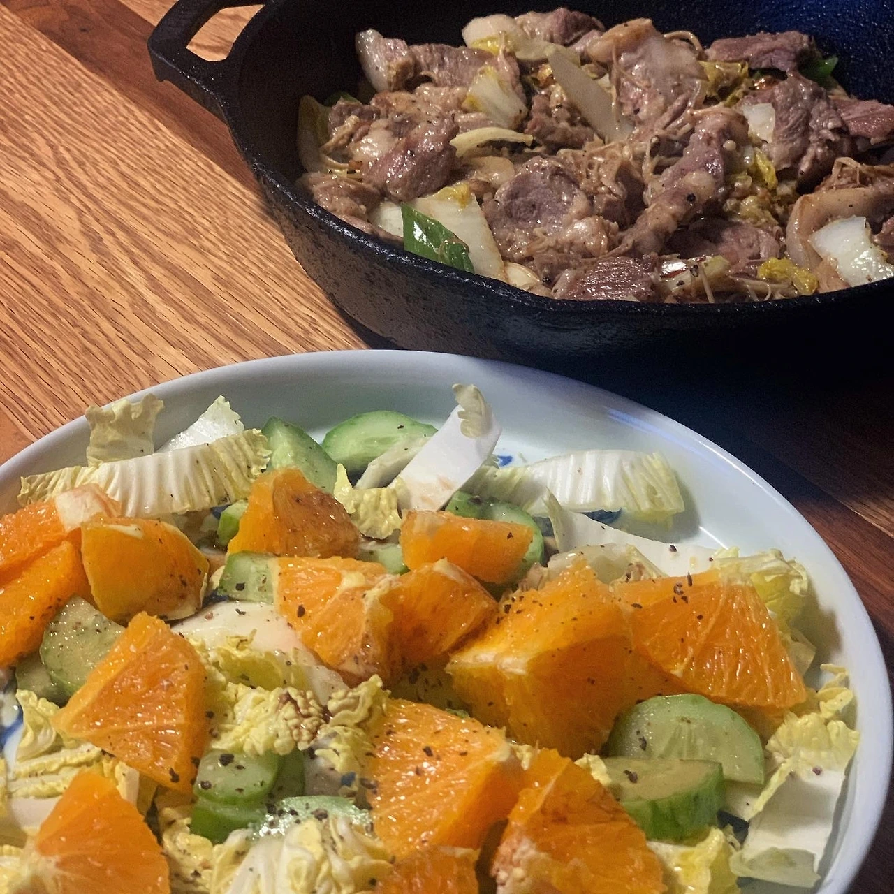 냉장고 파먹기. 시들어가는 오이, 알배추, 오렌지도 그럴싸한 샐러드. 냉동실 고기는 목심구이, 제육볶음, 가지고기볶음 등 다양하게 변주하는 #마냐밥상. H에게 가면서 섬초가 달큰한 계절이라, 시금치를 무치고, 고기 없이 들기름에 무를 볶아 뭉근히 끓인 무국 준비했어요. H 어머님표 굴전과 고사리나물, J이 사온 박고지 김밥까지 완벽한 식탁. 당분간 다시 집밥으로 돌아가야할지..당장 내일 저녁 약속이 취소됐네요.
