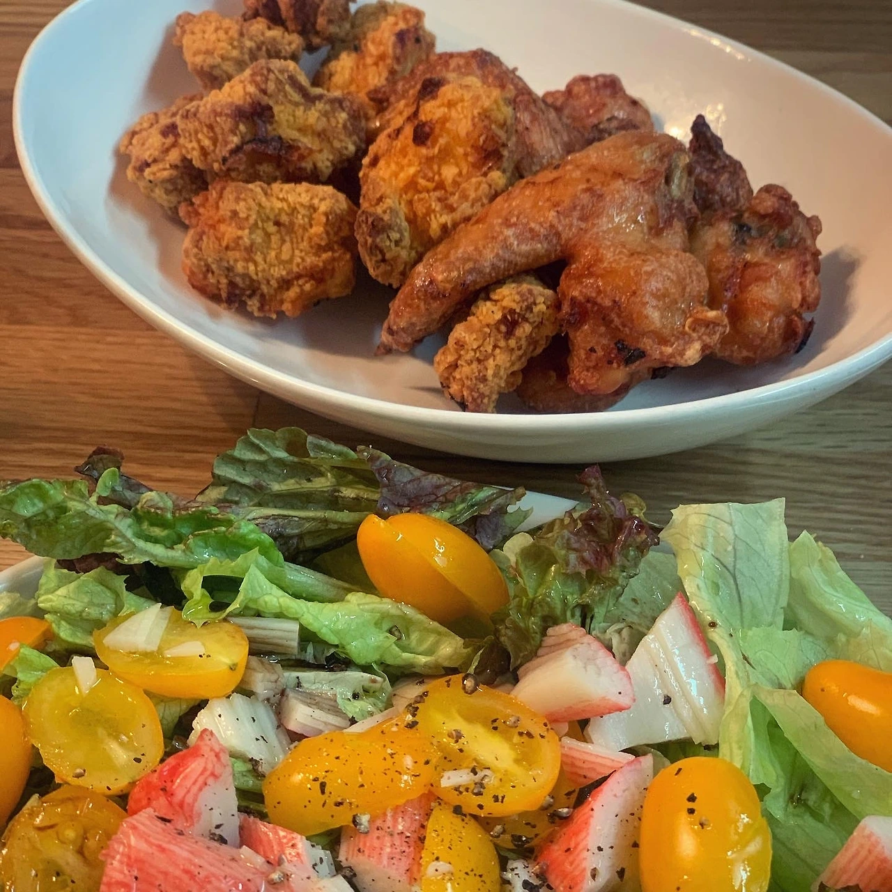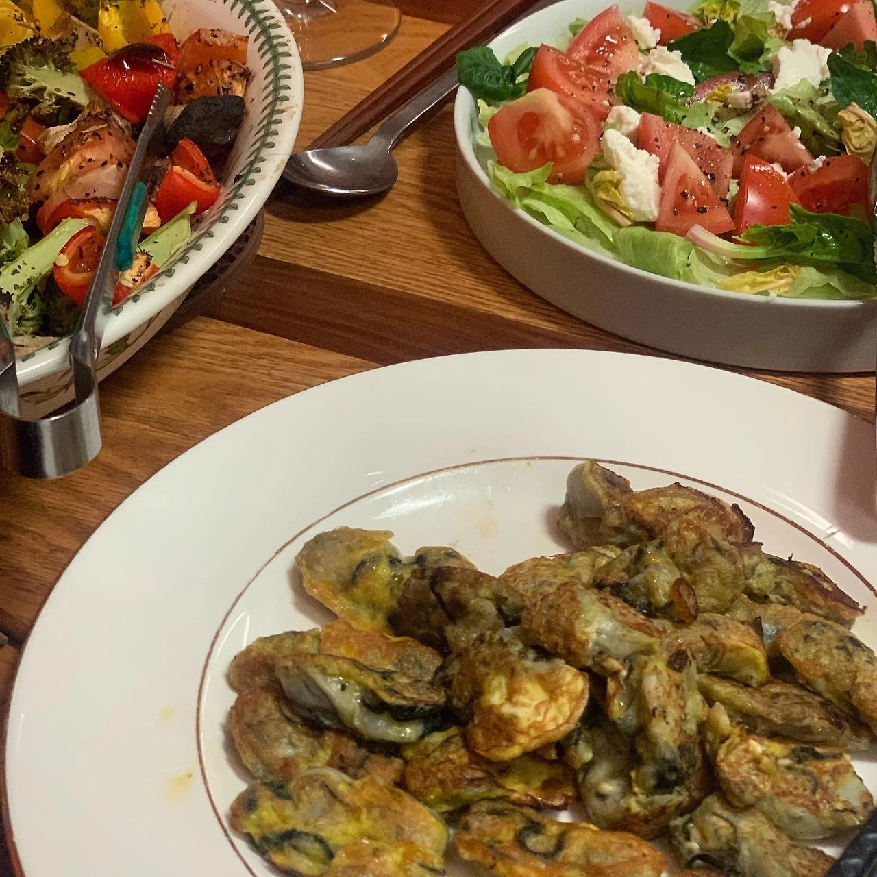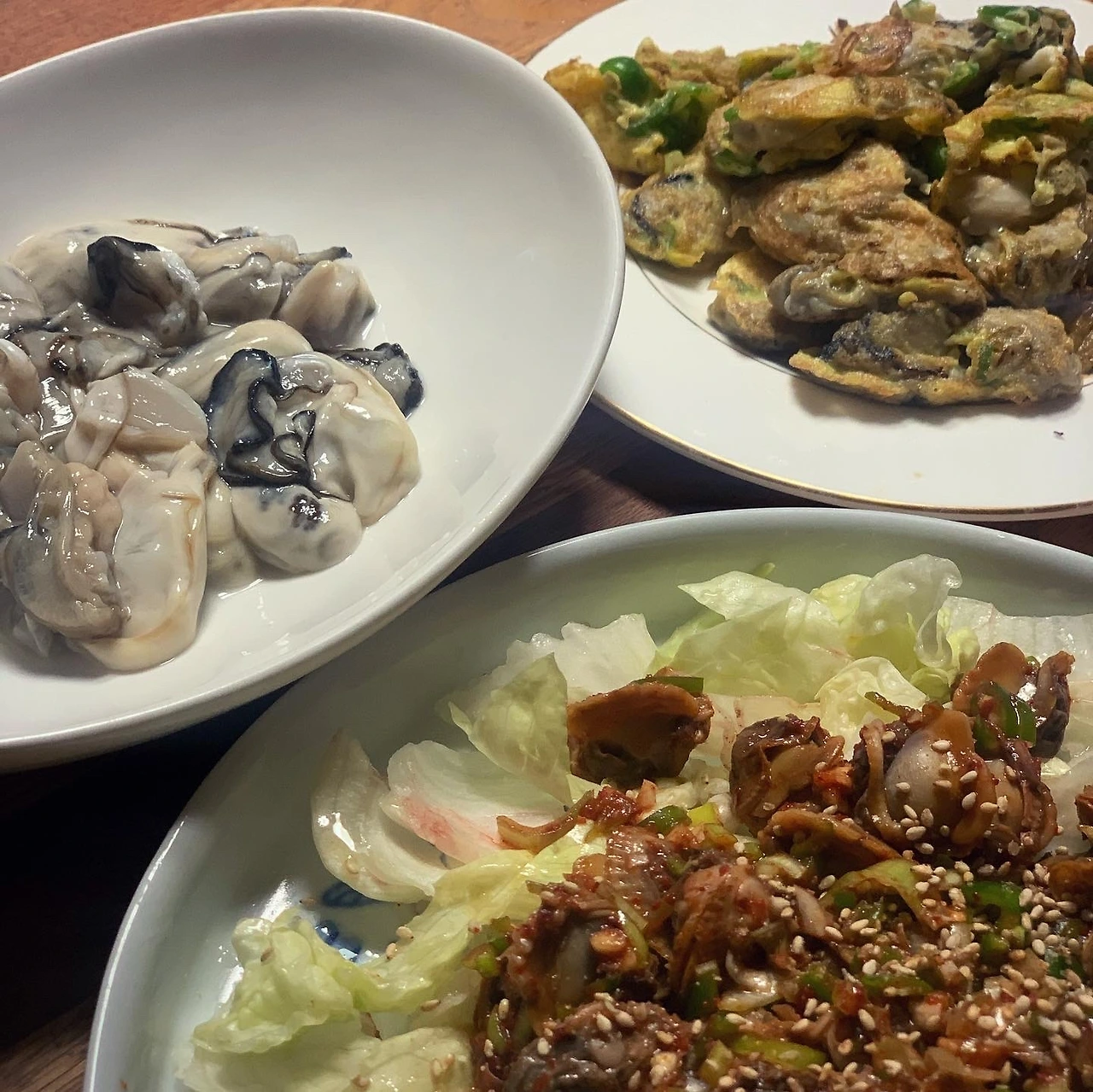 생굴 먹고 싶다는 딸과 간만 휴일 마트 데이트. 근데 가열해서 먹으라는 굴 푯말에 둘이 당황했죠. 뭐 큰 일 있겠나 싶은 안일함으로 반은 생으로, 반은 전으로. 굴 살짝 밀가루에 굴려 계란물 입혀 부치는건 딸이 했어요. 저는 해감한 꼬막 삶아 고춧가루간장액젓참기름 파마늘고추에 슬쩍 무치느라 바빴어요. 꼬막비빔밥 대신 양상추에 소금 참기름 살짝 둘러 곁들였어요. 딸과 맥주 한 캔 나누며 완벽한 저녁.