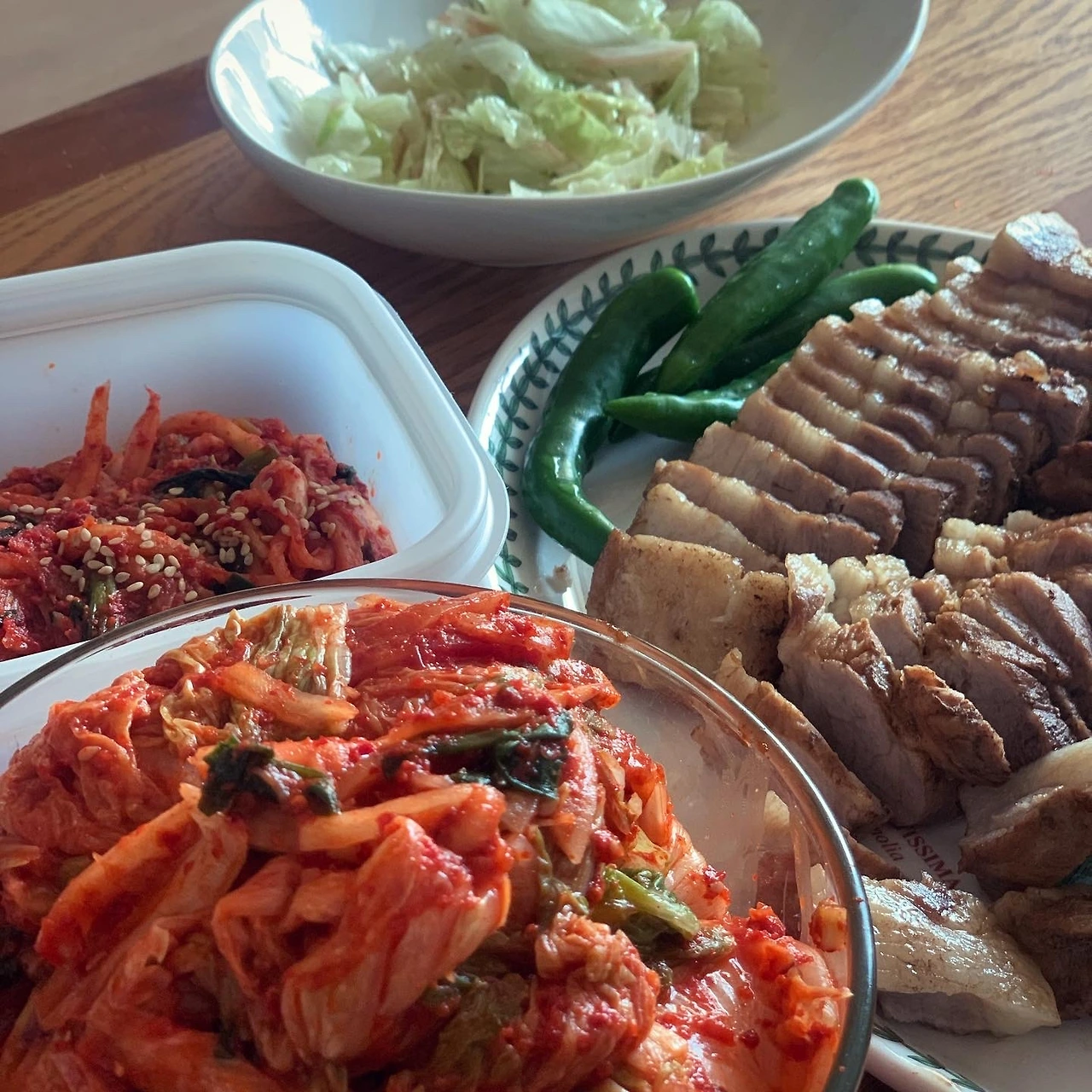 시아버님이 전날 가져다주신 시엄니표 김장 김치도 딸과 둘이서만. 시댁 더부살이도 5년 가까이 했는데, 언제나 바쁜 며느리라 김치 못배운게 아쉽군요. 고기도 잘 삶았지만 주인공은 김치였던 점심 #마냐밥상