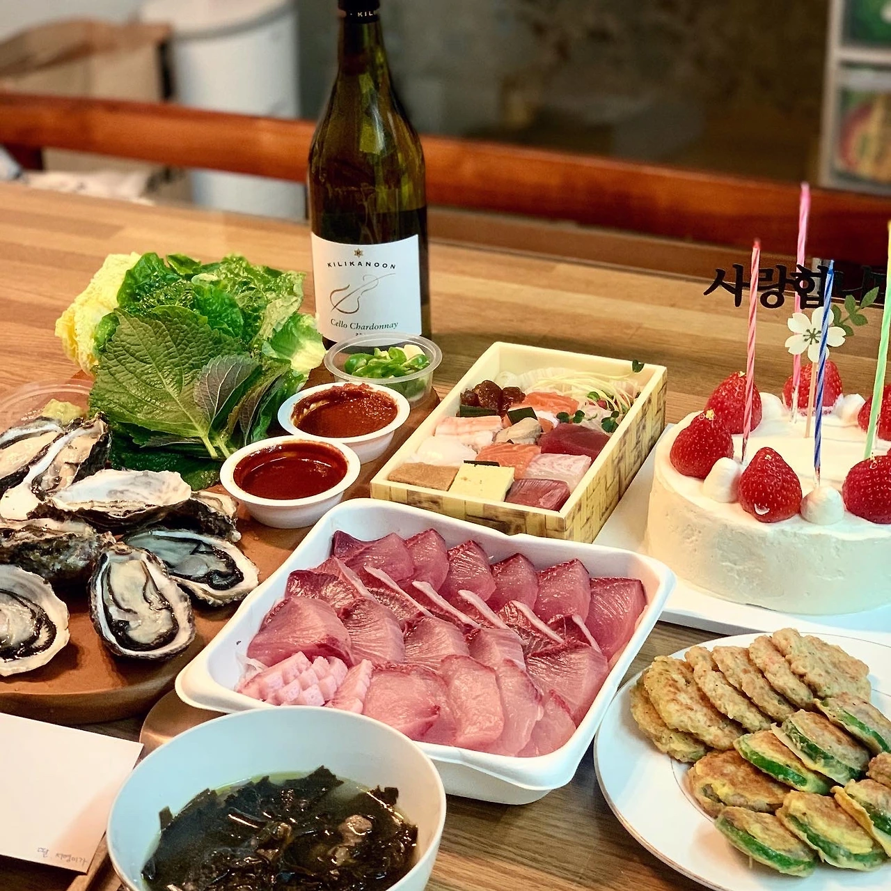 대방어, 석화, 누름초밥은 모두 #오늘회 주문. 가지런하니 예쁜 전은 시엄니 제공. 내가 한거라곤 오직 어젯밤 끓여놓은 미역국. 원래 한 상 신경써서 차리면 이런 #마냐밥상 아녔겠지만 나름 바쁜 나날이랄까요. 전날밤 보내주신 시엄니 약밥과 떡, 전을 보니.. 뭐랄까, 더 뭘 할 생각도 안들었고요. 아참, 후암동 #케이키 케이크 완전 맛나요. 무튼 열심히 사느라 수고많아요. 축하.
