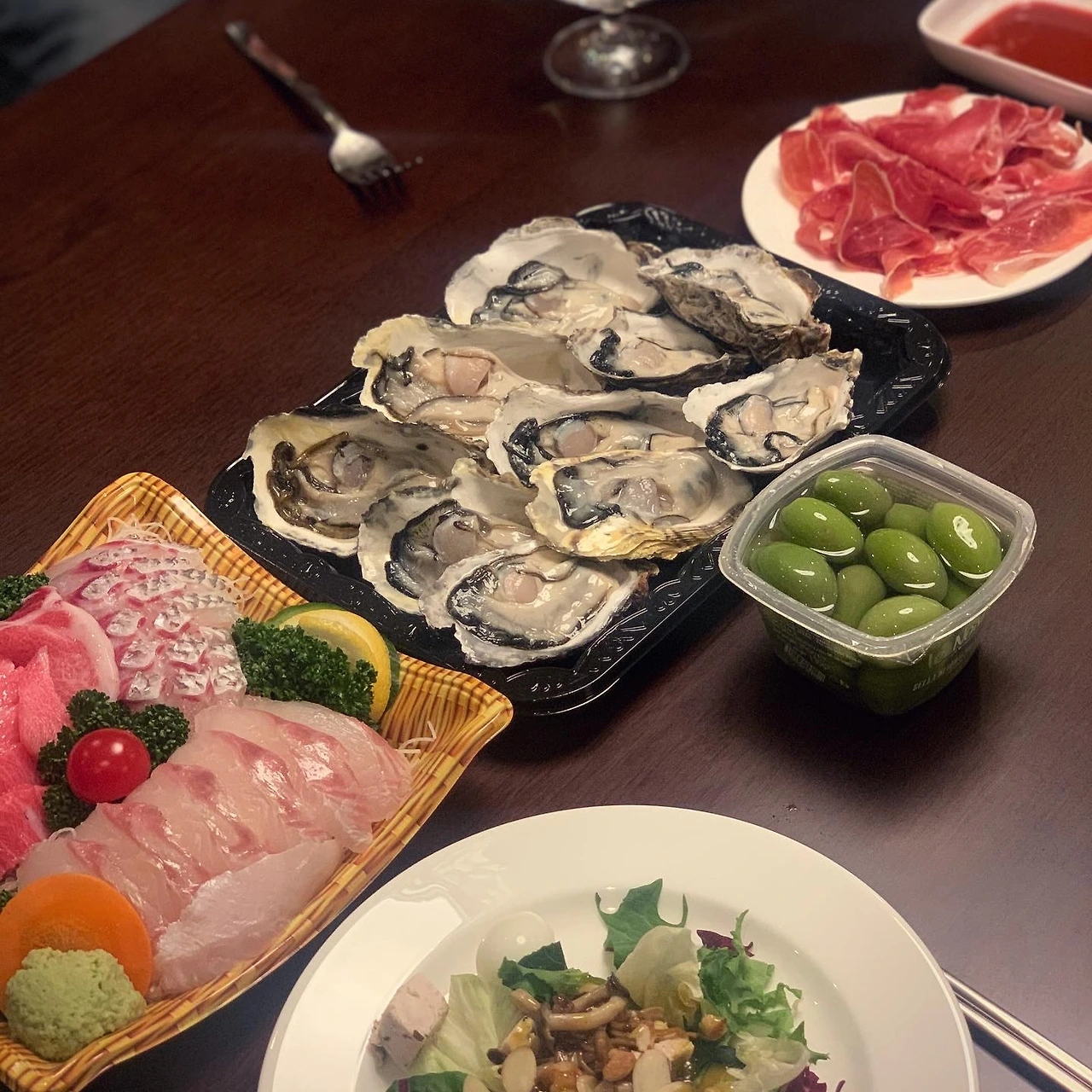 모처에서 가진 #문제적그날 모임엔 회와 석화, 샐러드, 올리브, 하몽을 샀고 치킨 추가 주문. 역사적 회동으로 기록되어야 하는게 목표랄까요. 두근거려야 마땅할 여정에 든든한 이들과 함께 해서 진심 좋아요.. 사람이 먼저여요. 그게 젤 어려워요.
