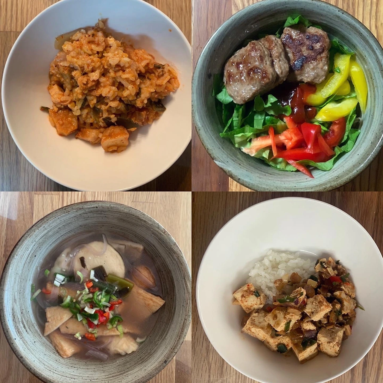 김치죽, 비빔국수, 어묵탕, 두부소보로 덮밥. 딱 한 그릇 일품 메뉴.. #마냐밥상