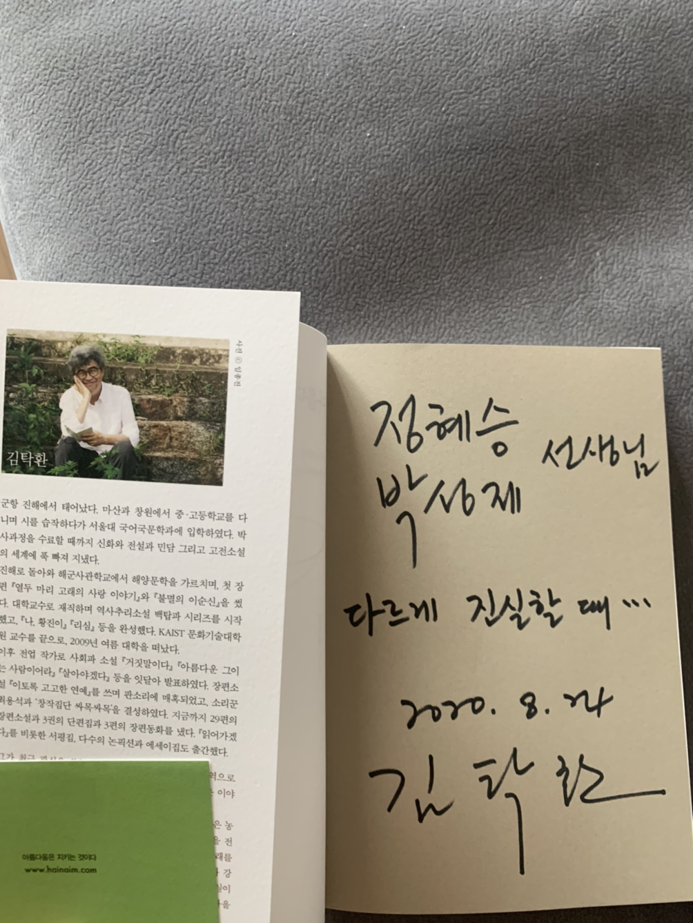 P.S> 이거슨 자랑. 원래 20대 시절부터 잘 알던 옆지기에게 탁환쌤이 가끔 저자 사인본을 보내주시곤 했는데, 사실 우리집의 탁환쌤 찐팬은 접니다! 드디어 이번엔 순서에서 제가 앞섭니다. 호호호. 제가 탁환쌤 '성덕'이잖아요. 2007년에 리뷰를 시작해서... 퍼나른 것 포함해 브런치에 있는 기록만 모아봅니다. 다 강추하는 책들이지만..바쁜 핑계로 리뷰 못하고 넘어간 책들 중에 <살아야겠다>도 꼭 보세요. 메르스 이야기이지만 코로나 이야기이기도 하니까요.