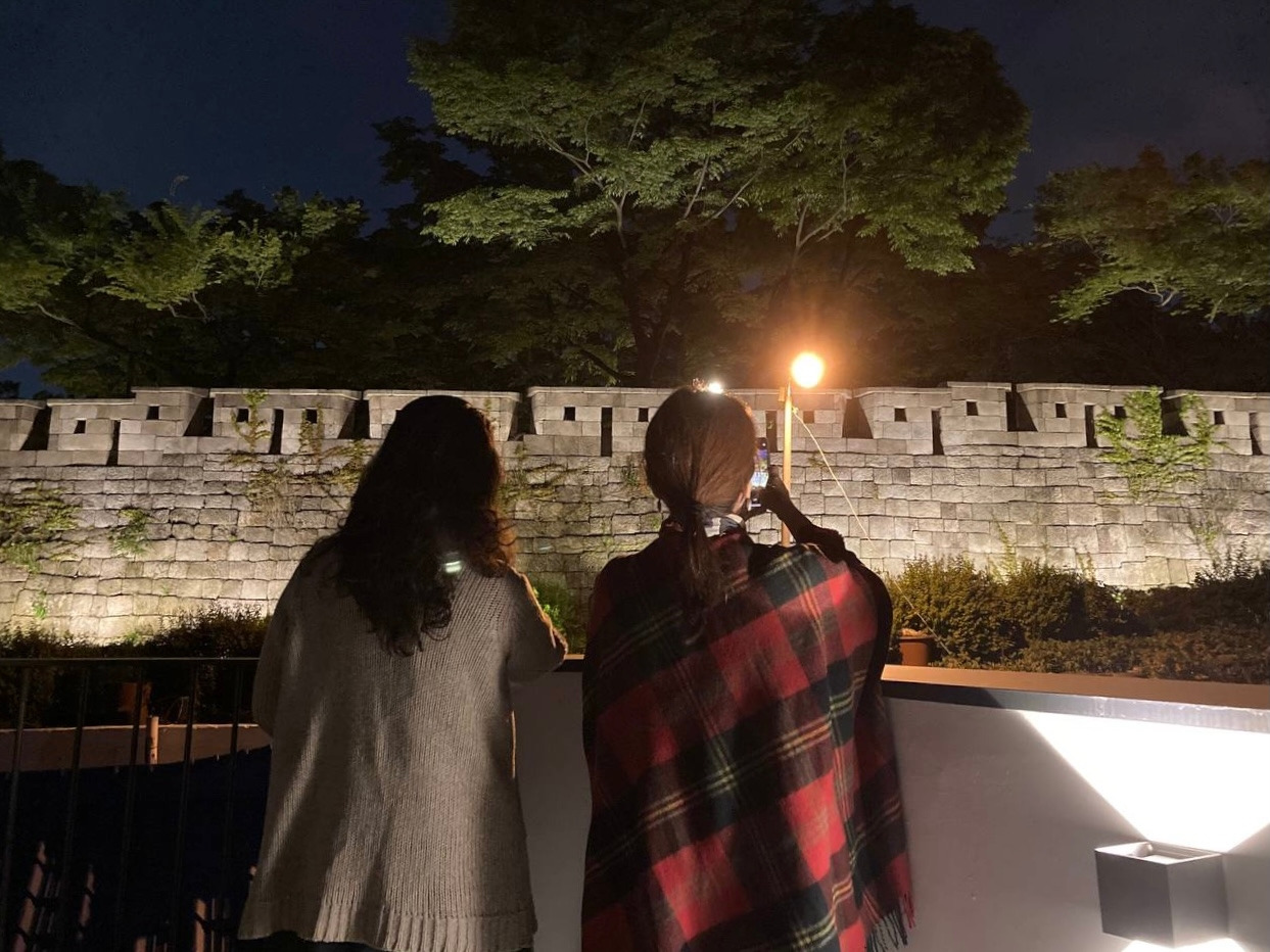 조선 초기의 성곽은 작은 돌을 쌓았고, 조선 중기 이후의 성곽은 큰 돌로 증축했다는 설명을 듣고 보니 다시 보이는 성곽길. 그 옆으로 무척 정교하게 깍아낸 테트리스 블록 돌도 새삼 놀랍다. 과거의 시간을 순식간에 살려내는 네 설명은 종종 가슴을 뛰게 해. 우리가 만난 햇수를 새기 힘들지만, 딱 그만큼 옥상의 바람을 즐기며 마시자. 살살 마시자.