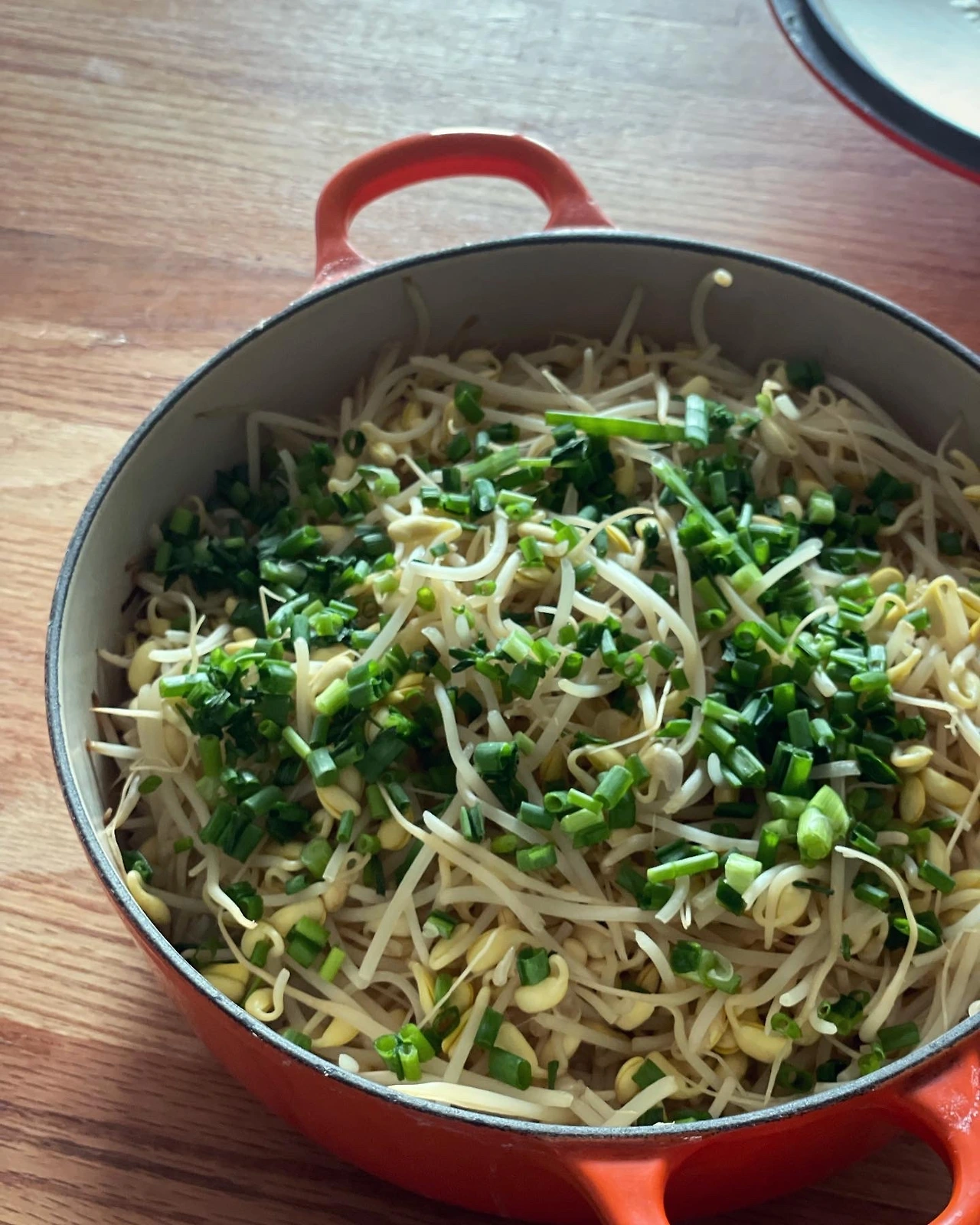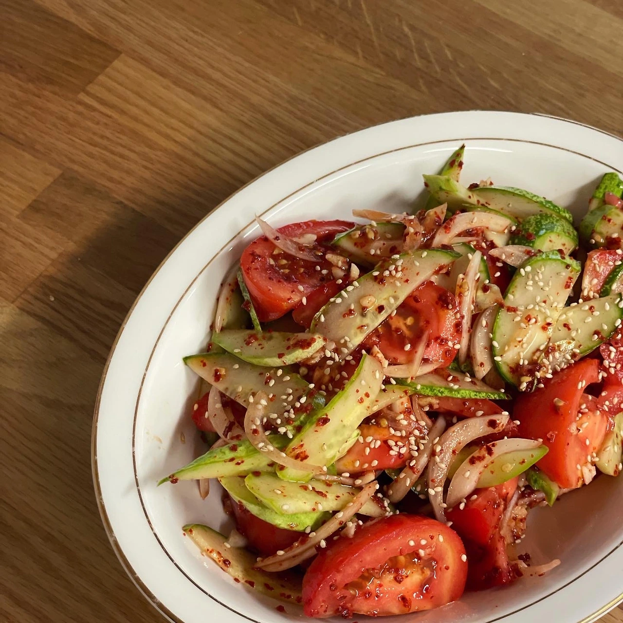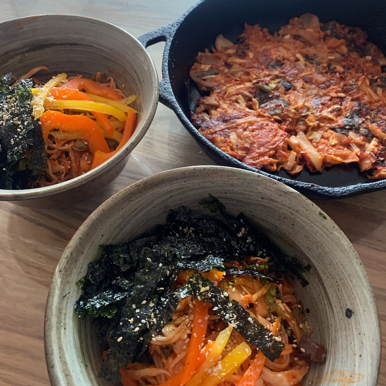 지난주에는 양배추 스테이크를 시도했고, 최애 무생채를 계속 활용해 비빔밥 했어요. 6월 초엔 들기름 막국수에 고수와 감태를 올려봤고요. 선물받은 어묵으로 전골도..