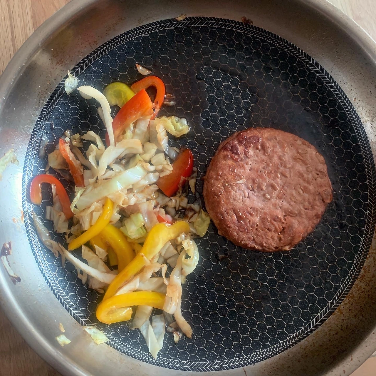 #언리미트 패티 구워서 빵 없이 양배추 볶음만 곁들인건 위가 아픈 아들 위해 지난주말.