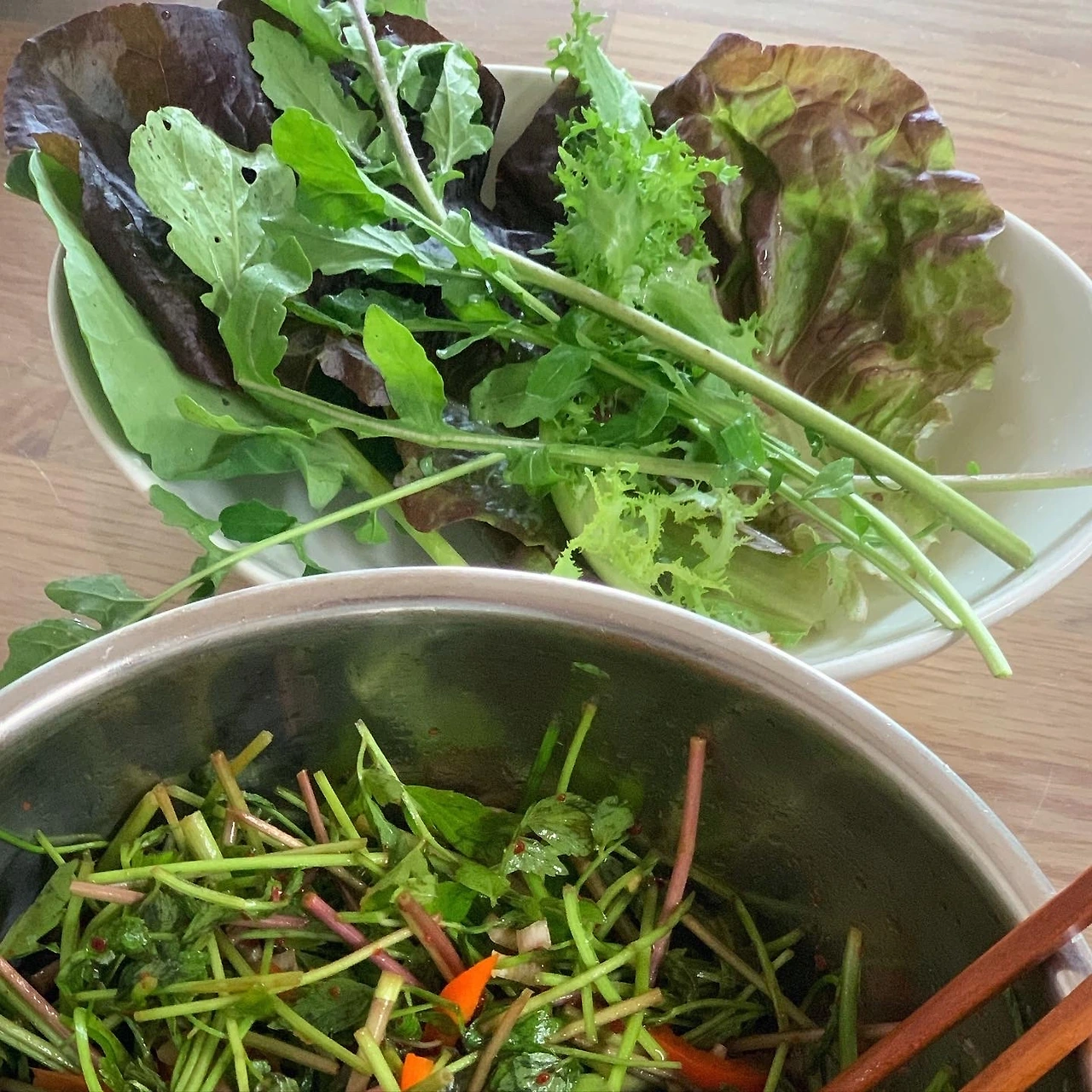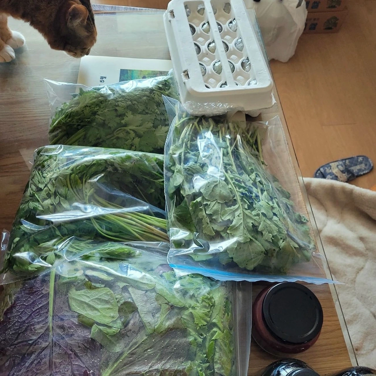 적,청 오크립, 버터헤드 3종, 적로메인, 케일, 적치커리, 곱솔치커리, 적겨자.. 쌈채소와 함께 하면 그 자체로 기분이 좋습니다. 녹색의 힘인가요. 다만 뭐가 뭔지는 모르겠어요ㅋㅋ