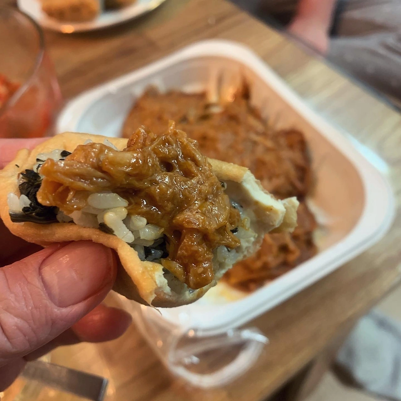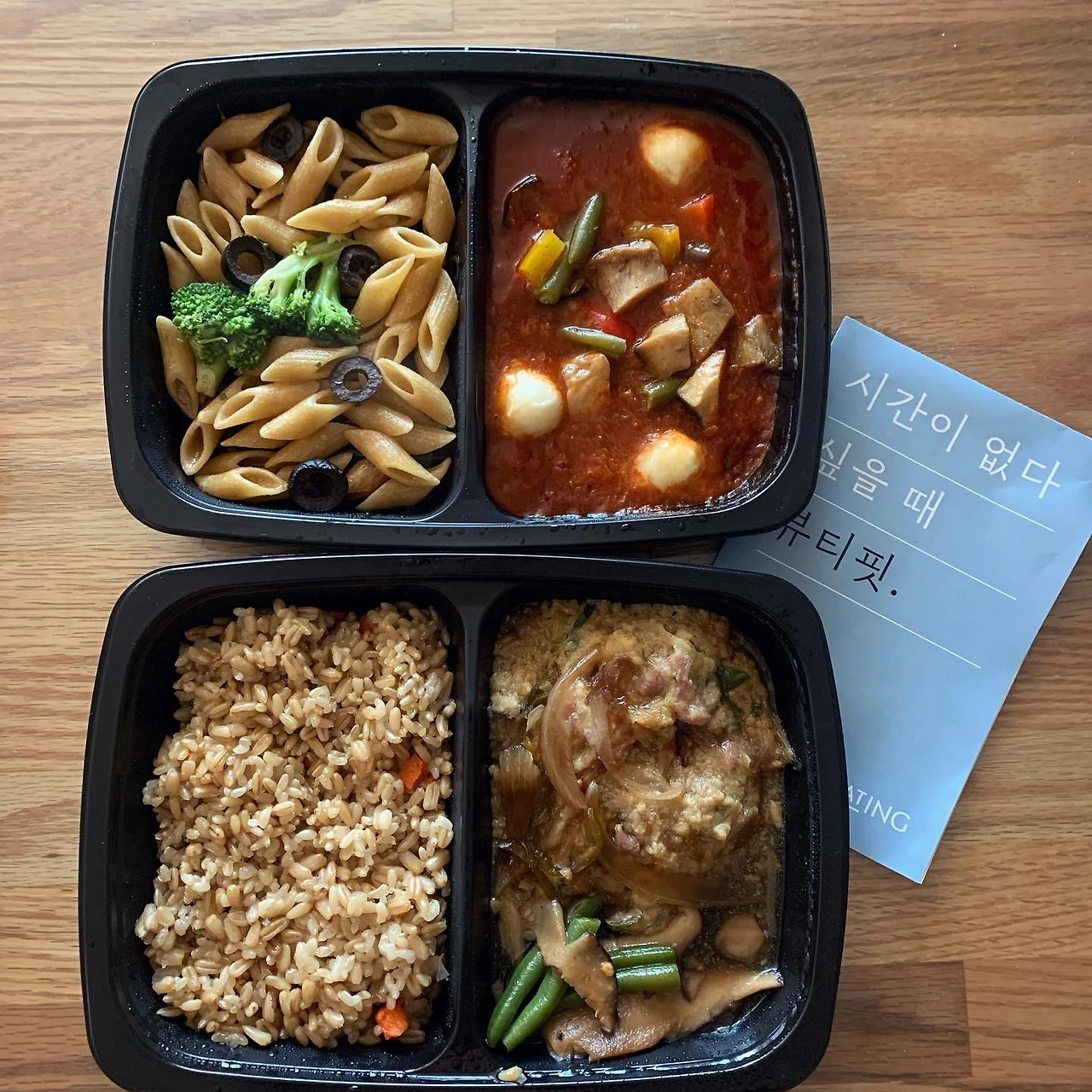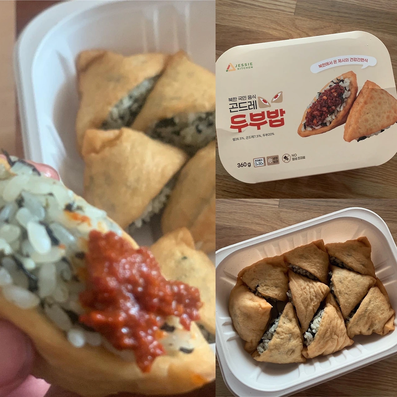 밀키트 주말이네요. 북한궁금쓰? 클하 방의 북한 분들이 소개해주길래 완전 궁금해서 곧바로 주문했어요. 네이버 제시키친의 #두부밥. “바삭하게 튀긴 두부 안에 밥을 넣고 매콤한 양념을 발라 먹는 북한 국민 음식”이라고요. 일본식 단짠 유부 대신 담백한 두부튀김에 초밥 대신 곤드레밥. 전자렌지 2분30초 건강한맛 초간단 한끼. #카카오메이커스 들참국수 역시 호기심. 제가 하는 야매 들기름막국수 보다 들기름이 더 듬뿍 들어가고, 약간 단맛도 더했네요. 토핑은 냉털. #마냐밥상