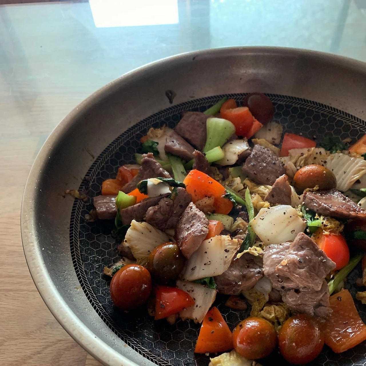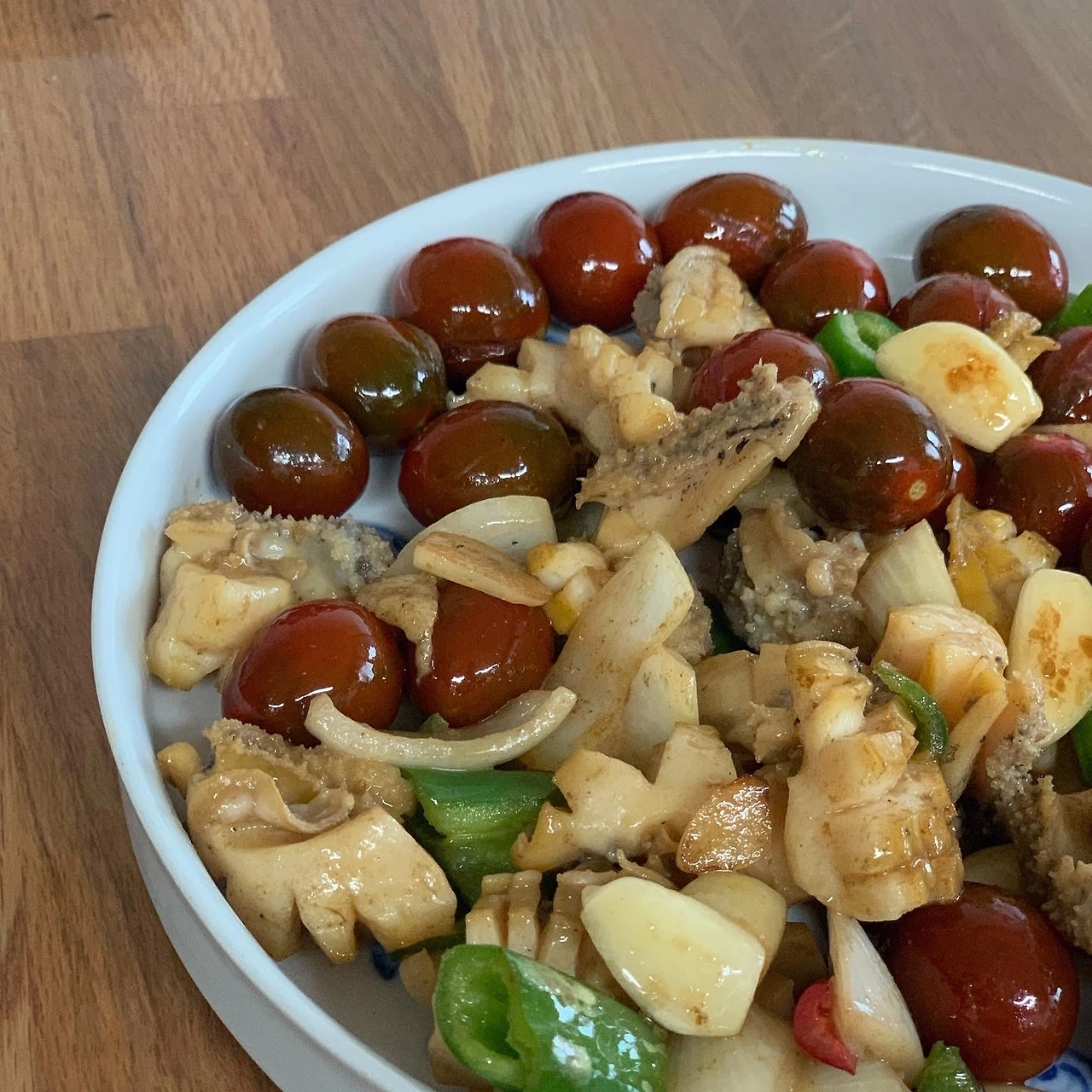방울토마토도 열심히 해치워야 할 때, 고기와도 볶아보고, 전복과도 볶아보고. 토마토는 익히면 무조건 맛있죠.