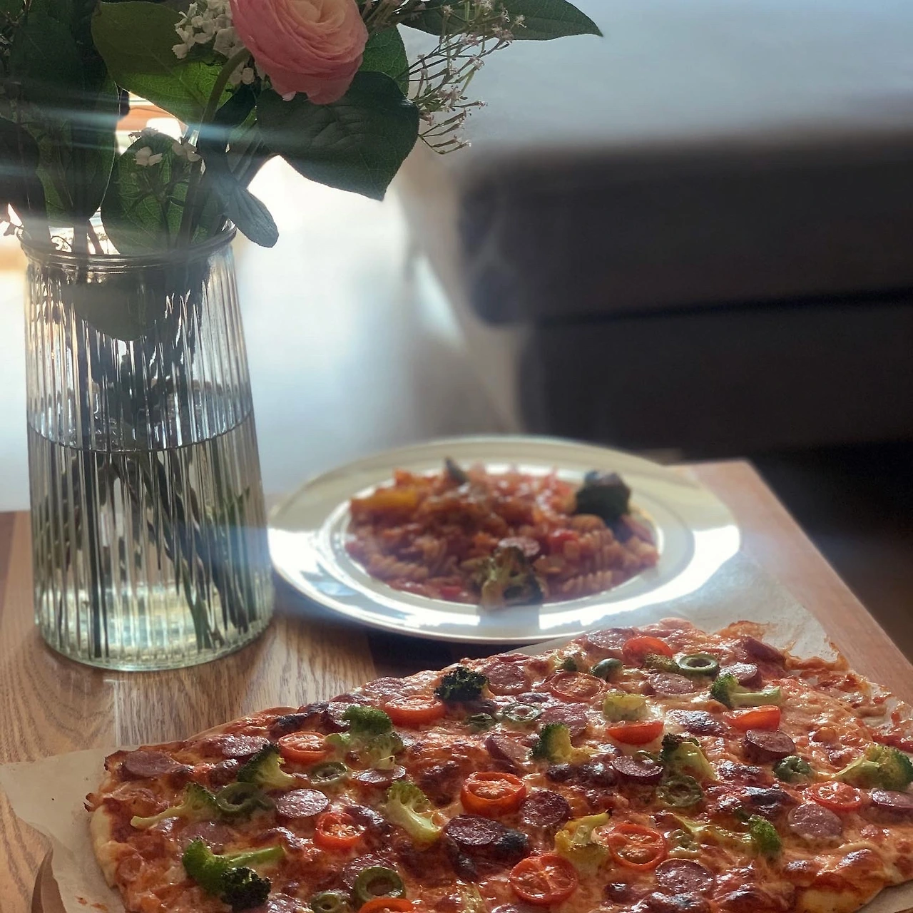 냉동실 비우기. 1년 전 10개 산 피자 도우 생지 마지막 처리. 매번 케첩 쓰다가 토마토쏘스 써서 그런지 내 솜씨 치고도 훌륭했어요. 남은 쏘스에 토마토, 브로콜리, 파프리카, 양파 넣고 파스타까지.