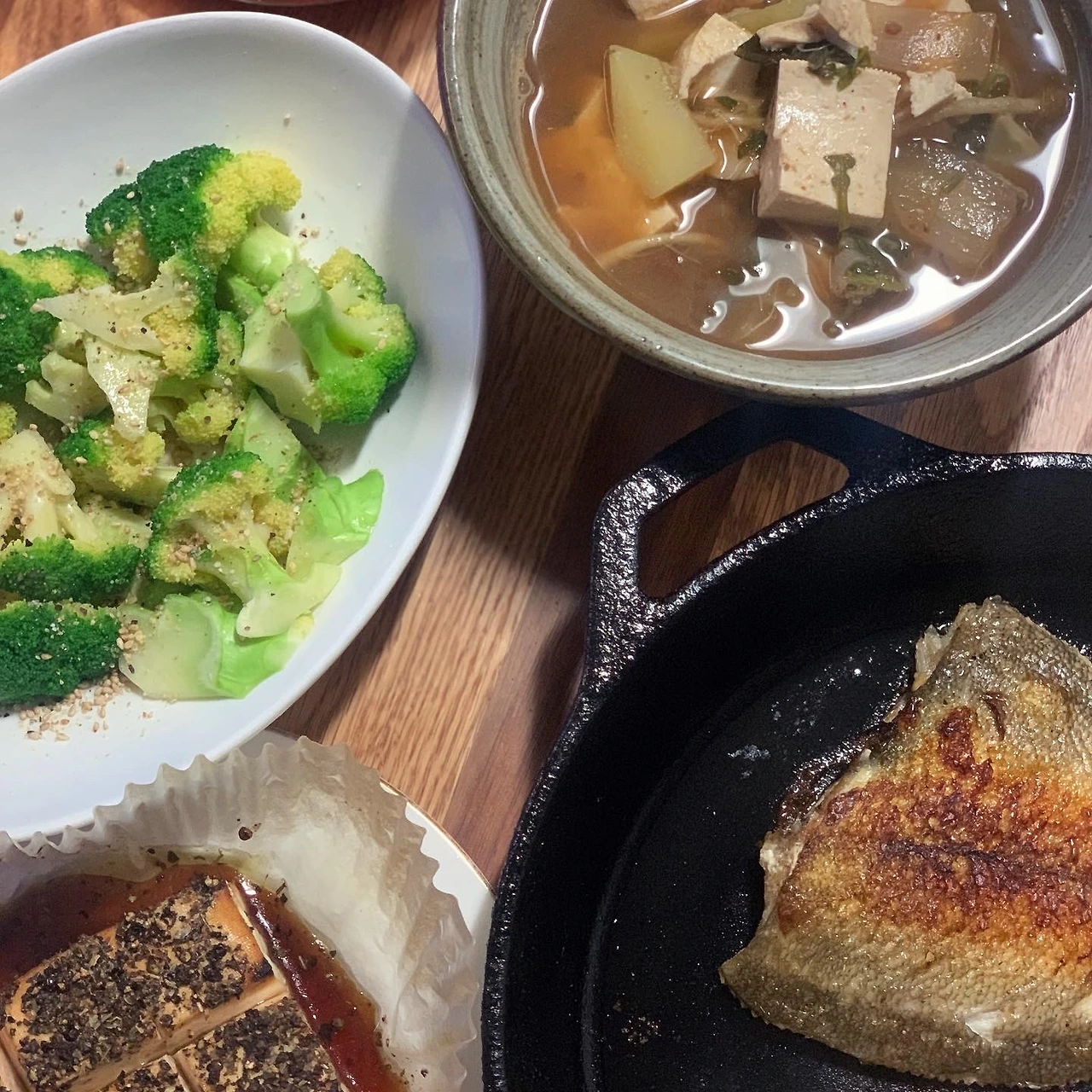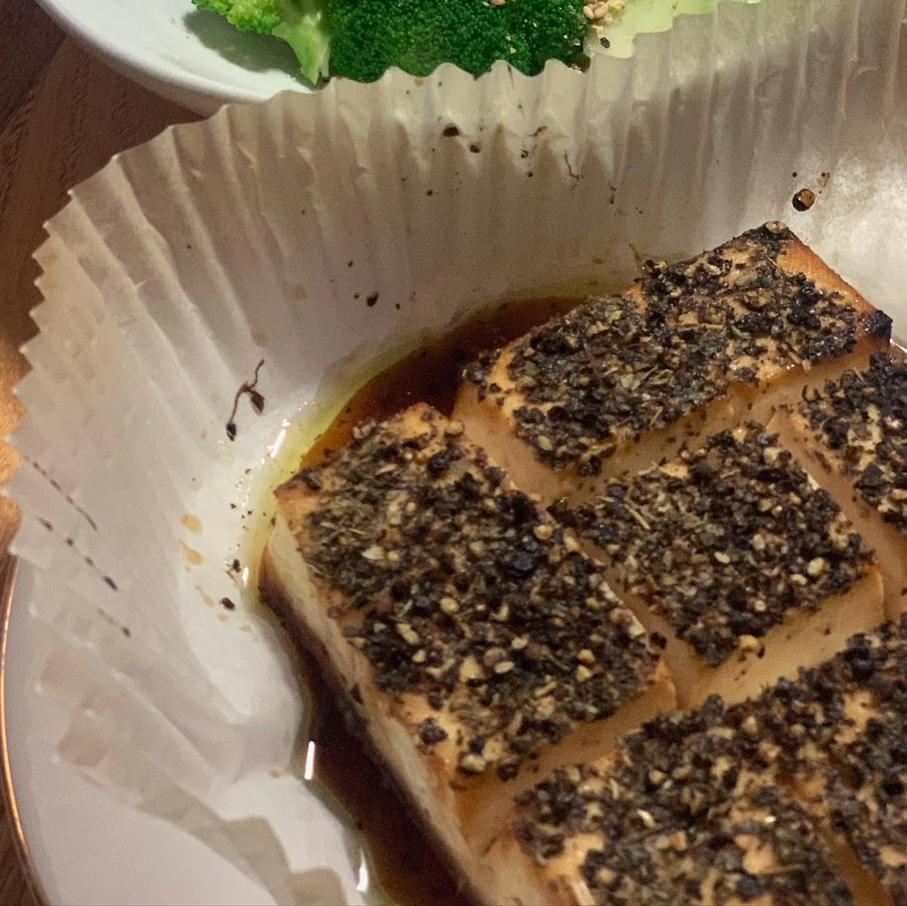 딸이 트윗 핫템이라던데, 이미 ㅇㅎ님 인스타에서 레시피 받아놓은 두부구이. 두부에 칼집 넣어 맛간장,올리브유,빨간연두 1:1:2 라 했는데 맛간장 대신 역시 오래된 데리야끼소스. 바질과 통후추 듬뿍 뿌려 에어프라이어 200도 20분. 와와! 진짜 초간단 훌륭. 이날 밥상은 브로콜리 무침, 냉이된장찌개, 역시 9월에 냉동실 들어왔던 가자미 구이. 만찬급.