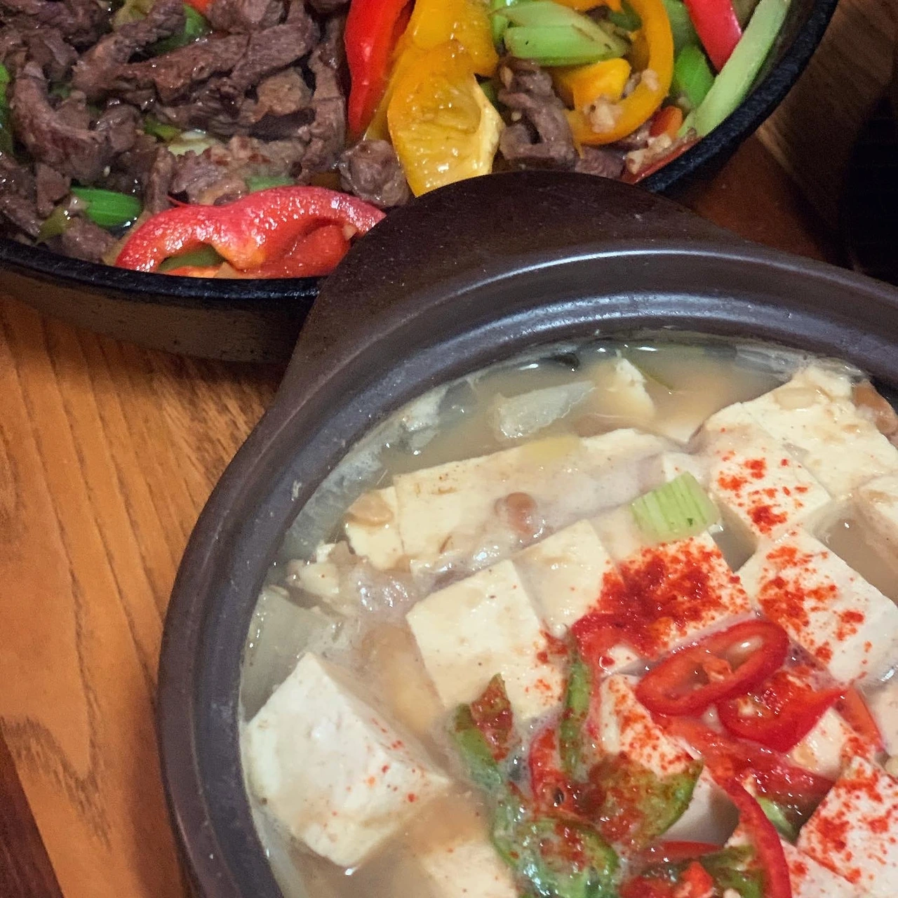 와중에 오징어 숙회와 굴전. 청국장 찌개에 뿌려본 김치시즈닝. 무튼 덜 차리는 방향으로 #마냐밥상