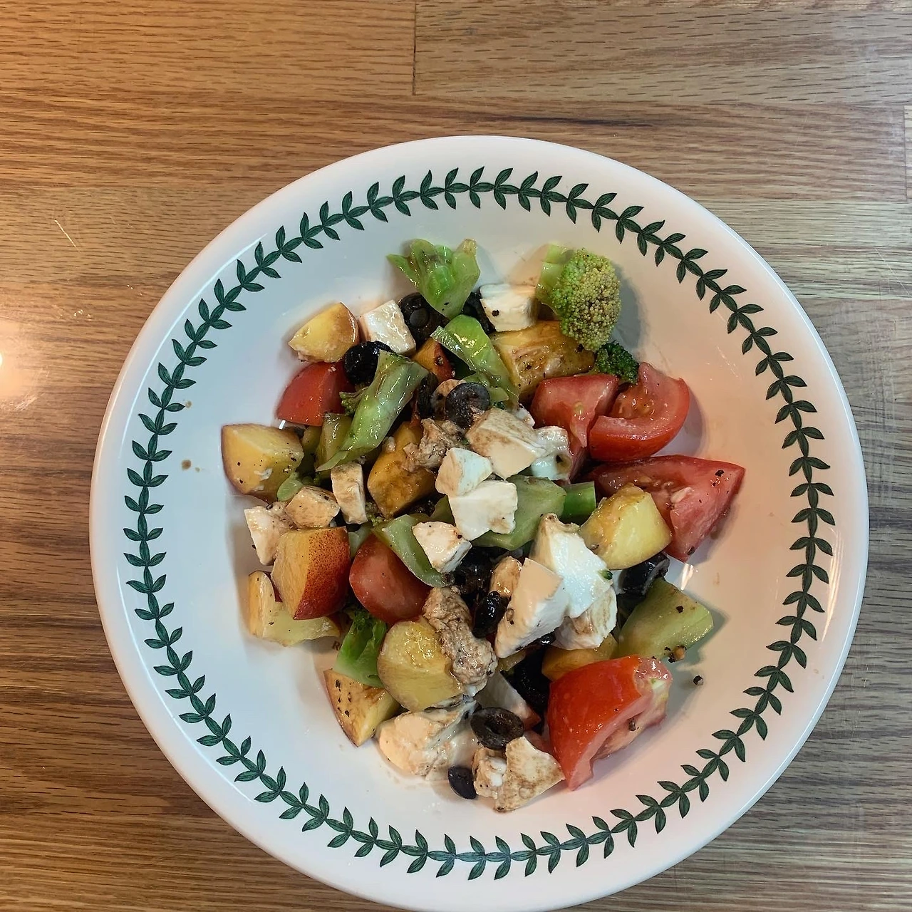 집밥은 주로 딸 몫이다 보니, 재료가 안줄어요. 천도복숭아 한 알이 시들시들 오래 가길래 샐러드.