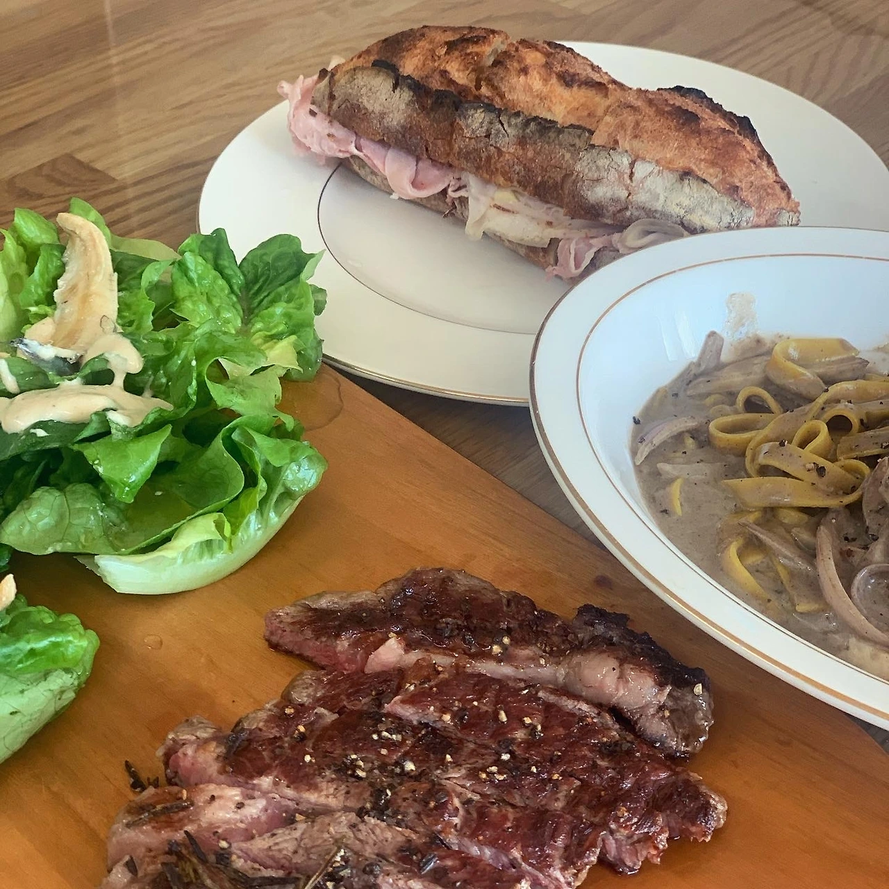 이래서 밀키트. 제가 손 빠르다 해봐야 더 빠르게. 그리고 먹어보니 담엔 그냥 해볼 수 있다는 가이드?ㅎㅎ인스타에서 장진우님의 오로마로마 7종 밀키트 11만원에 주문해 세 식구 특별한 두끼 해결. 시저 샐러드, 잠봉뵈르, 스테이크, 트러플크림파스타는 2020년 마지막날 오찬. 라자냐, 부라타치즈, 판체타(두툼 베이컨) 살시차(소세지)는 2021년 첫날 만찬. 판체타와 살시차엔 냉장고 야채를 듬뿍 더해 오븐에 구웠더니 괜찮아요. 2021년엔 밥상에 신경 덜 쓰는게 목표인 와중에, 밀키트로 차린 #마냐밥상