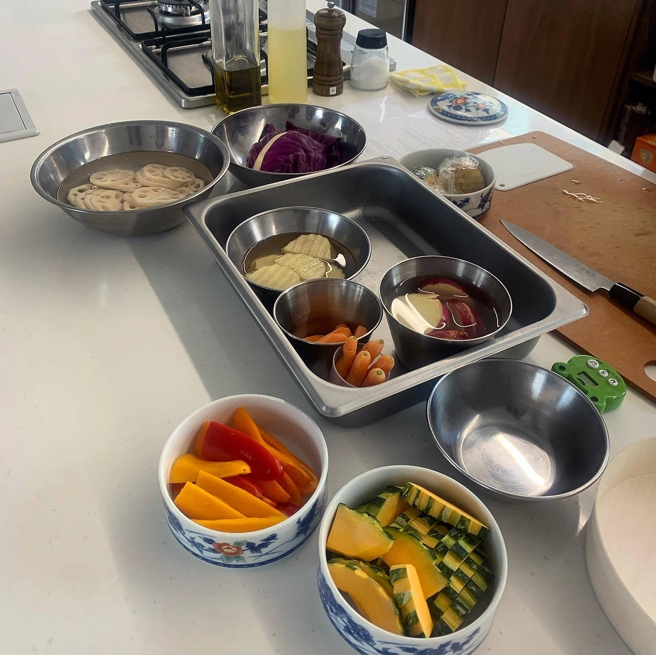 인생 로망이 요리 수업 들어보는건데 오늘 이뤘습니다. 쿠킹 스튜디오 #오픈북 @openbook.seoul 팔로잉하다가 도저히 못참고 신청. 토요일 두 시간 행복했어요. 함바그 반죽 치대는 것부터 해서, 당근 맛난거 신기한 캐롯 글라세, 제철 채소 허브구이, 김 계란말이, 적채 샐러드, 껍질콩 참깨 무침, 감귤푸딩.. 그냥 주부놀이 하던 제겐 차원 다른 클라쓰. 때가 때인지라 학생은 단 4명. 마스크 차림으로 친절한 쌤 설명에 몰랐던 요리팁 여럿 얻었습니다. 쌤이 준비해주신게 더 많지만 무튼 도시락 완성하니 뿌듯. 예전 같으면 모여서 먹기 딱 좋은 테이블이 있지만 테이크아웃 하여 저녁으로 냠냠. 초고퀄 도시락 주문에 관심 있다면 오픈북으로 문의하시고요ㅎ 인연 닿은 덕분에 따뜻한 차와 갓 구운 스콘 티타임까지 기분 좋은 시간. 서촌사진관 2층의 마법 같이 예쁜 공간.