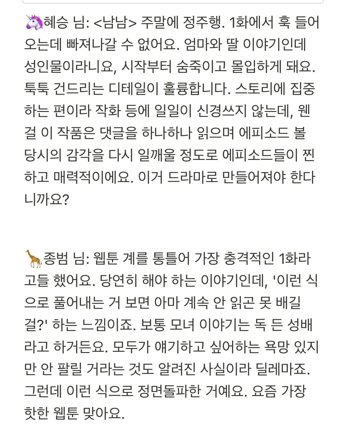 이런 제목을 달아도 될까 싶지만, 어디서든 이건 진짜 하이퍼 리얼리즘이라고 거품 물고 찬양하고 싶은 웹툰 #남남.