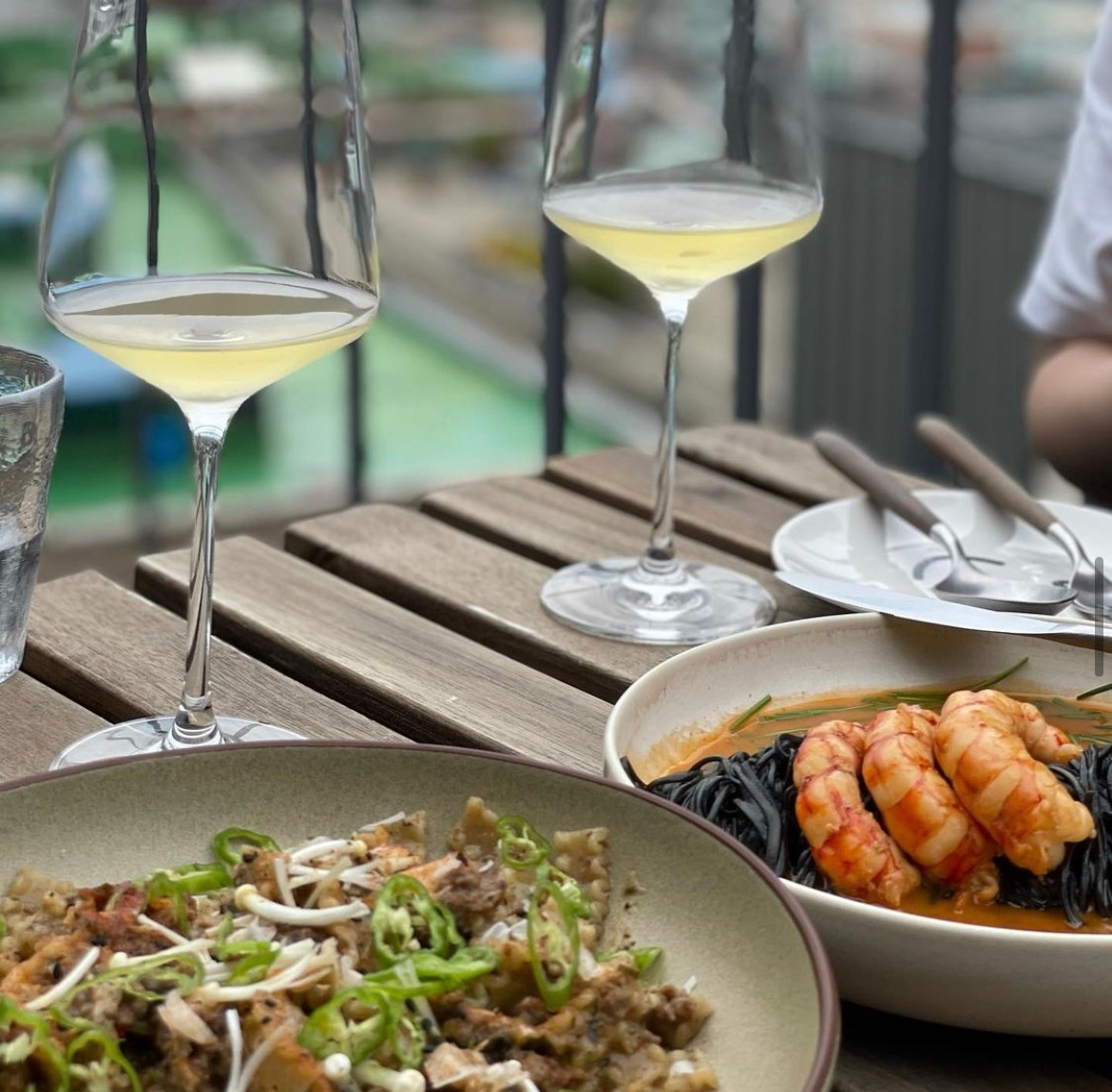 해방촌 #에그앤플라워 뷰맛집인데 파스타와 이베리코 스테이크도 굿. 다만 와인을 주문해야 테라스 자리를 내준다는 건 약간 어이 없.. 덕분에 낮와인. 전날 좋은 와인을 선물하면서도 한 방울도 못 마셨는데, 이날 부득이 한 잔. 스트레스로 인한 면역 약화? 발목 수술부위가 덧나서 곪는 바람에 열흘여 금주 중인데 뭐 이젠 어찌 되겠죠. (가족들과 제 생파!)