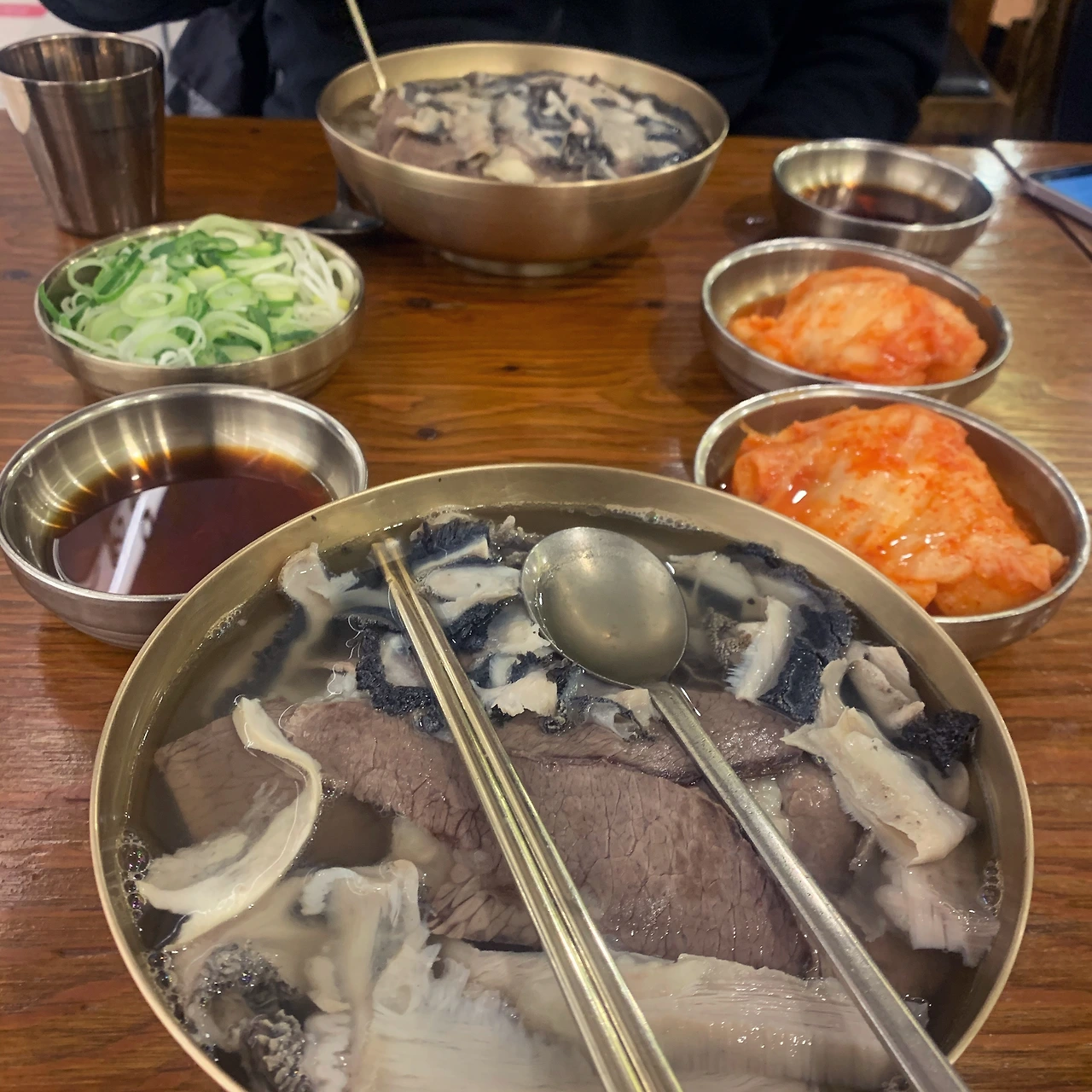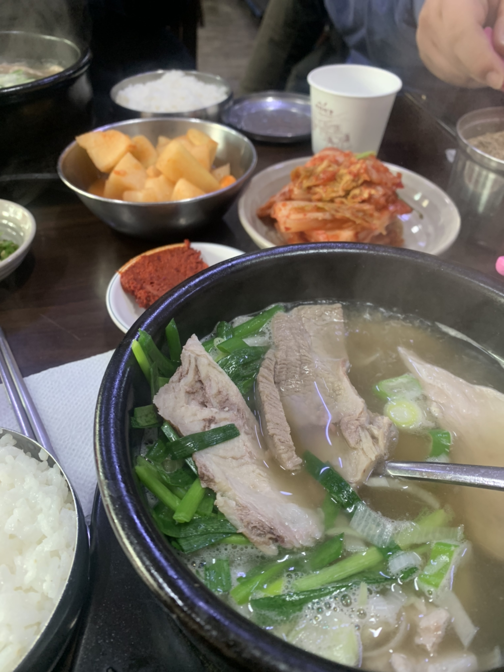 뚝섬역 #부산돼지국밥밀면 벼르고 있었는데 국밥 괜찮아요. 청일점 K을 보더니 "여자 손님만 있는줄 알았다"며 고기듬뿍 국물을 아예 한 그릇 더 갖다주시는 인심. 여자들은 적게 먹는다는 고정관념은 아쉽지만 다정해요ㅎ