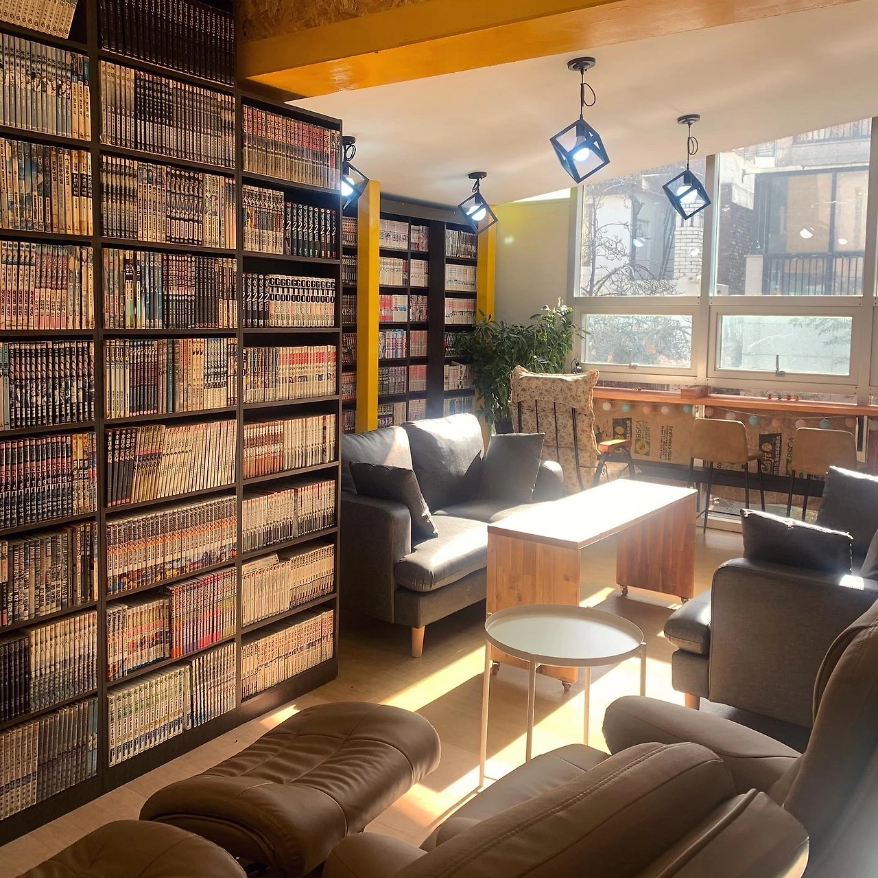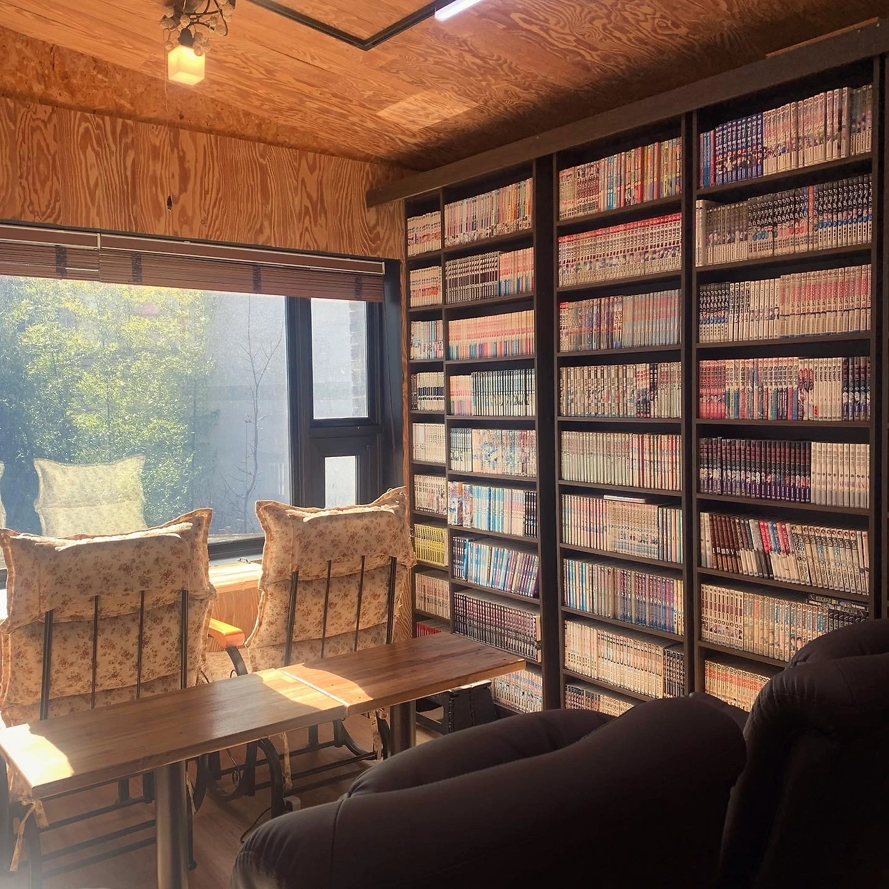 카페 2층엔 만화책이 가득. 만화카페인가 이용료를 여쭸더니 그런거 없다고요. 그냥 저기서 차만 마시면 된다고요. 약속 시간 앞서 와서 기다릴 공간을 찾은 것만 해도 좋았는데 망원동 월드컵시장 안쪽에 이런 곳이 있다니. 차 맛도 훌륭. 1층엔 무협 판타지 방이 있고, 지하 목공방에서 가구도 만드시고. 아무래도 사장님 소장만화 보관 겸 자아실현 카페인듯. 언젠가 2층서 햇살 받으며 만화 보는 날이 오면 좋겠다 상상한 #카페빈틈.