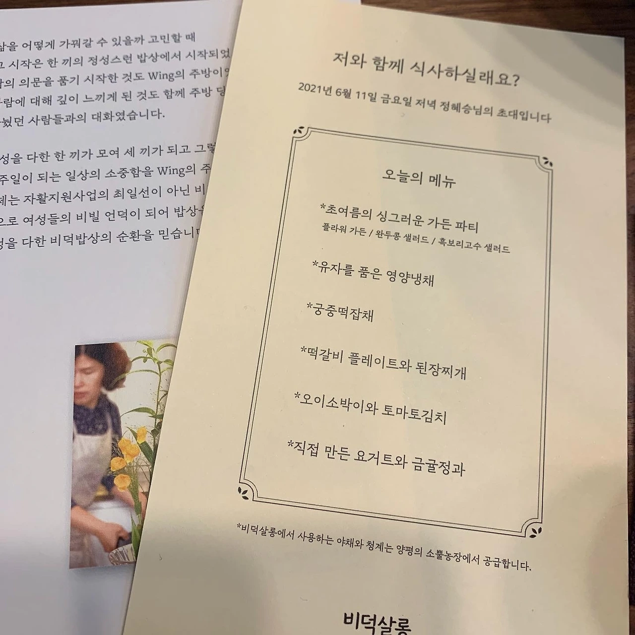 “취약계층여성과 함께 일과 배움을 통해 존엄한 삶을 만들어 간다"는 사회복지법인 Wing은 1953년부터 진화해온 곳. 여성들을 위한 직업훈련, 푸드뱅크사업, 창업 지원, 치유글쓰기, 여성인권영화제, 인문학 아카데미, 친환경 핸드메이드 사업, 쉐어하우스, 일자리사업, 소셜키친..그리고 비덕살롱까지.. 볼때마다 감탄하고 감사할 따름입니다. 제게도 든든한 '비빌언덕' 비덕님 멋져요. 덕분에 다정하고 근사한 시간 보냈습니다. 7월에도 신청하고 싶지만 좀 참고 양보했다가 다음을 노려볼게요ㅎ 내내 유쾌한 수다를 나눈 친구들. 건강하자. #마냐먹방