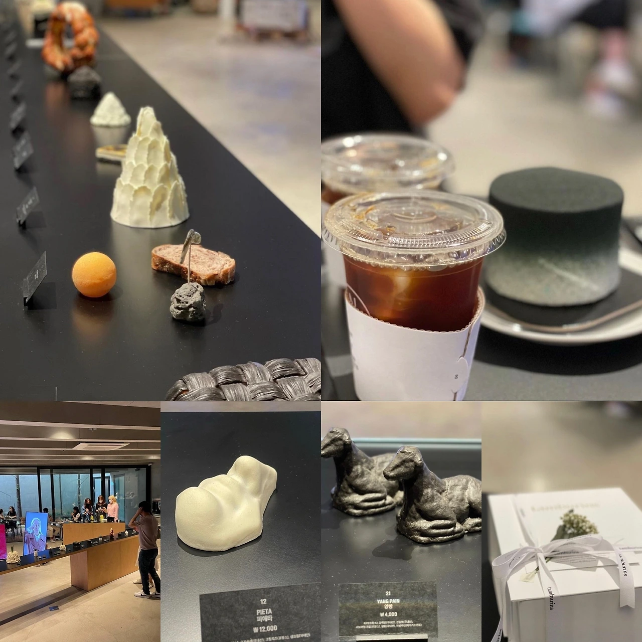 피에타, 라는 빵. 자세히 볼수록 놀라운 아이. 앙팡이라는 저 빵은 또 어떻고. 화이트벨을 비롯해 모든 상품이 뒤통수 때리는 충격들. 현대미술이라 하기도 낯선 디스플레이를 배경으로 빵들을 무척 고급지게 진열한 방식도, 공간을 운영하는 태도도, 태블릿을 낮은 기둥에 박아 메뉴를 살펴보게 하는 것도 다 '힙'하다고 할 수 밖에 없어요. 힙의 정의가 무엇인지 다시 생각하게 하고, 사람의 상상력을 이렇게 밀어붙일 수 있을까 감탄. 1층의 공간 전시도 건물 전체도 문화탐방 관광상품. 이런 곳에 와봤다는 경험 자체가 말이 되도록 만드는 힘. 젠틀몬스터가 운영하는 #누데이크. 한때 매장마다 중국인들이 줄서서 산다는 패션선글라스 업체 정도로 알았는데 경이롭네요. 힙한 친구 S님이 대기표 받고 기다려준 덕분에 잠시 신세계를 보았어요. 패션맹에다, 명품은 사치품이라 부르며 멀리하는 신포도족이지만 사람들이 어디에 열광하는지 살피는건 무척 흥미롭습니다. 최근 오징어게임 자체보다 거기에 열광하는 현상을 더 생각했는데, 젠틀몬스터가 지배하는 공간, 탬버린즈란 브랜드로 확장하는 방법, 누데이크 @nu_dake 라는 디저트카페의 틀을 깨는 이 과감함 역시 인상적. 사진으로 기록남기지만, 사실 이날은 대화를 통해 배우고 위로받고 흥분한 시간으로 기록해야 마땅. 성질급한 즉시대응형 인간으로서 호흡을 고르는 법에 대한 이야기를 비롯해 그는 어느새 나의 멘토. 한밤에 시간을 청해준 덕분에 성사된 9월 최고의 번개였어요. 급히 달려와 마음 전해주신 Y님, 또 마음 보태주신 H님도 고마워요. 제 인복이 이리 좋아요ㅎ 오래 갚아보죠.